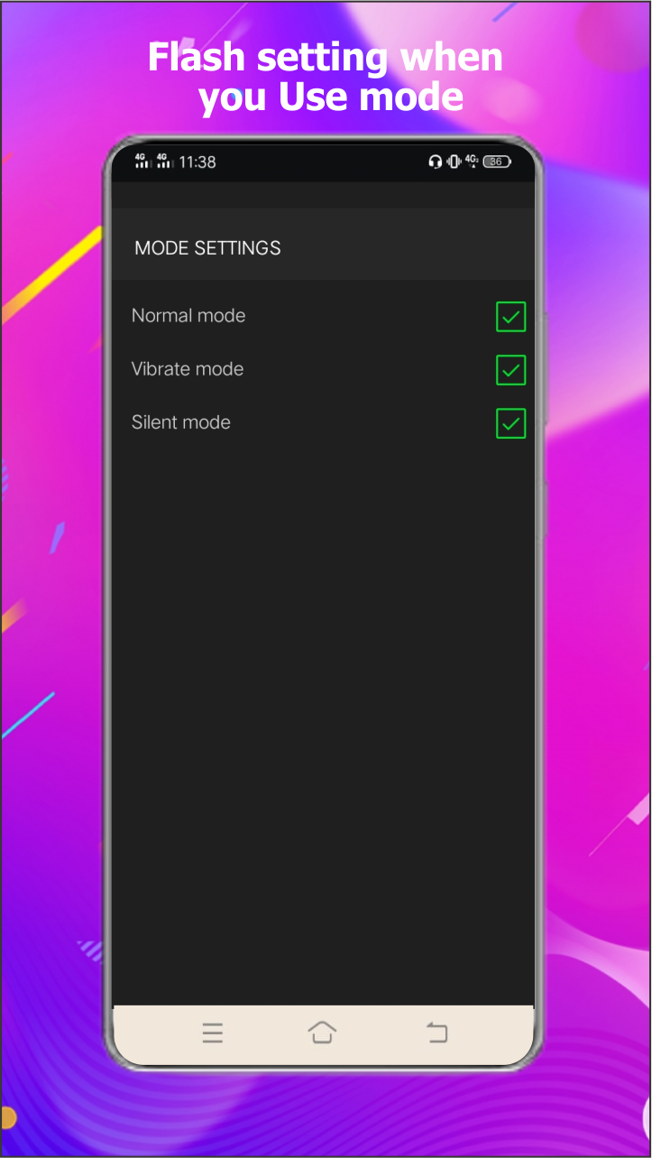 • You can activate flash for Normal, Vibrate and Silent phone mode