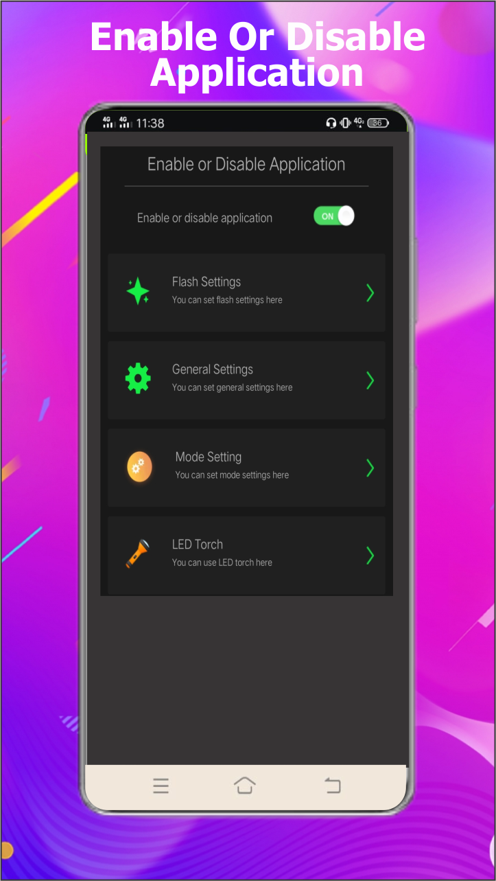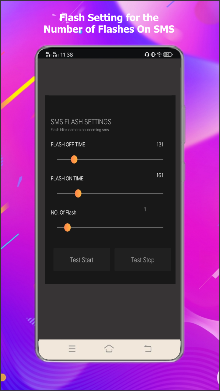 • Customized settings for flash on SMS including Flash On time and Flash Off Time