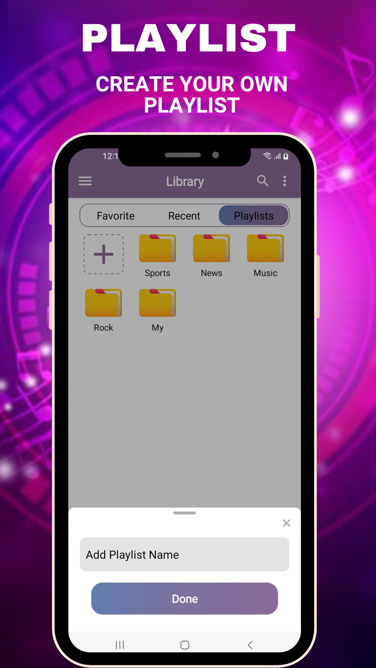 ✔ One-click access to FAVORITES, RECENTLY PLAYED, and Custom Playlists.