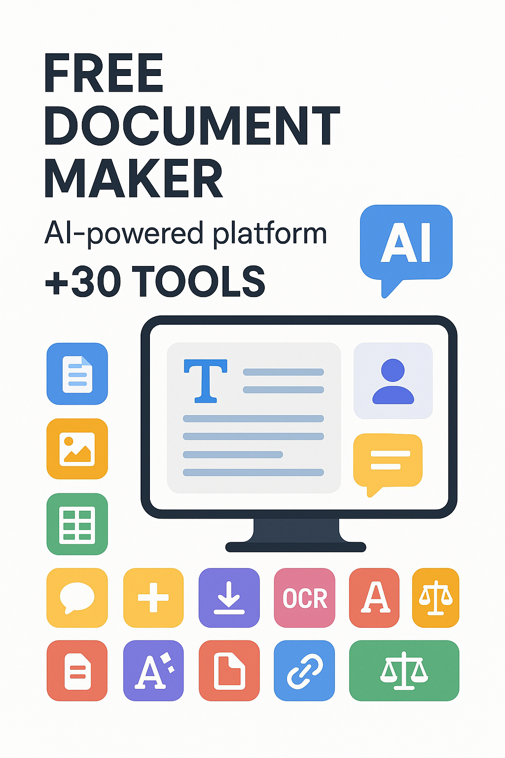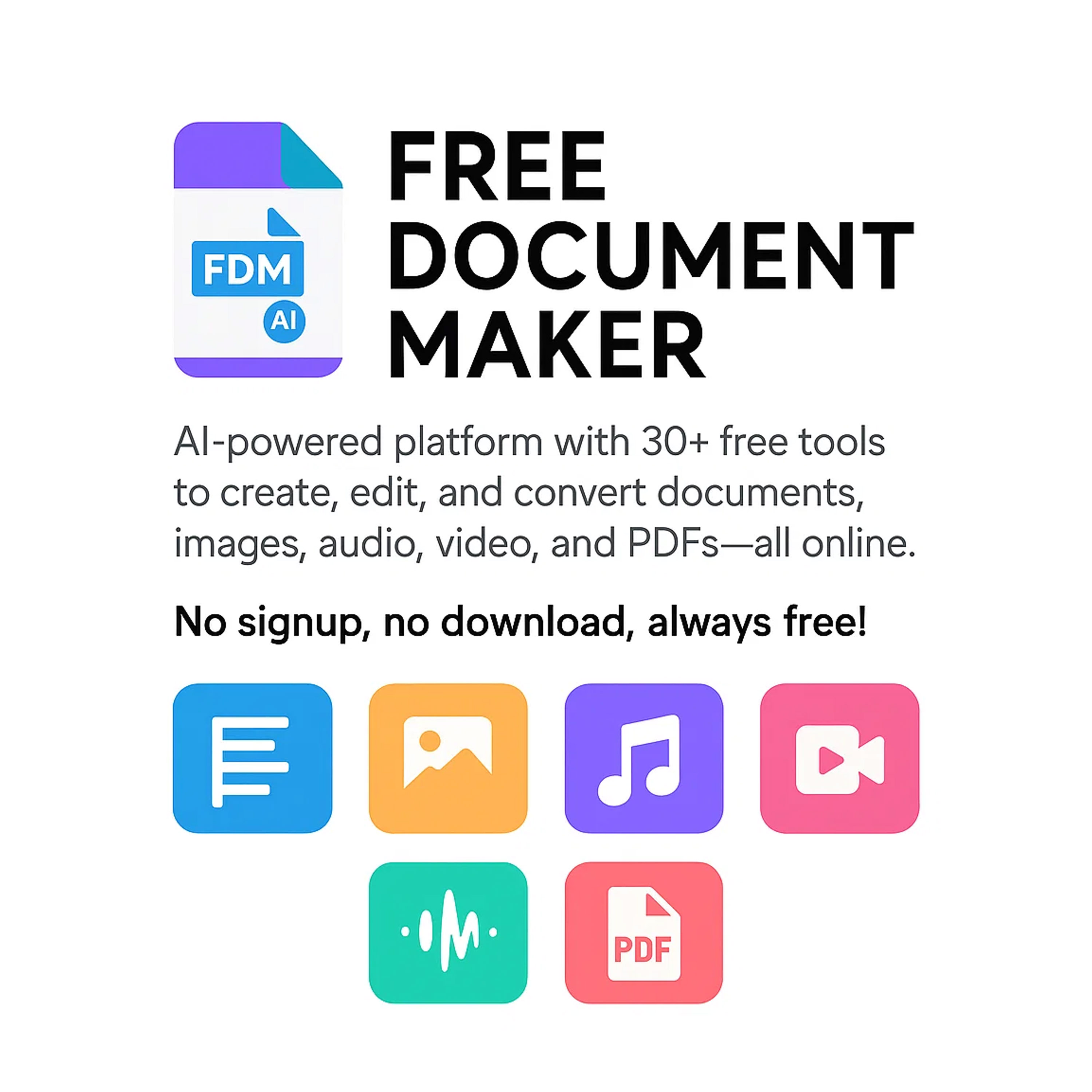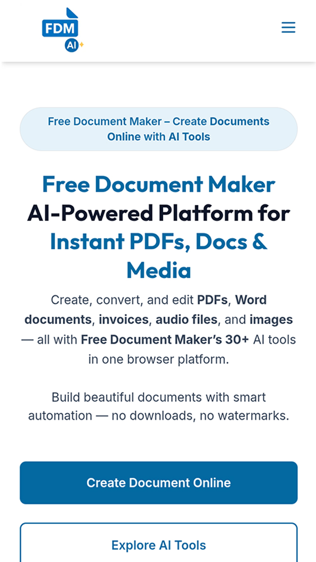 Free Document Maker is an AI-powered platform with 30+ free tools to create, edit, and convert documents, PDFs, and media directly in your browser.