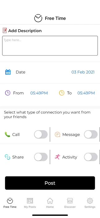 Get the Free Time App and ask your network for calls, texts, shared links, and/or recommended activities during your scheduled Free Time. This personal media app allows you to reach out to all of your friends at once when you are bored, wanting attention, and not sure what to do.
