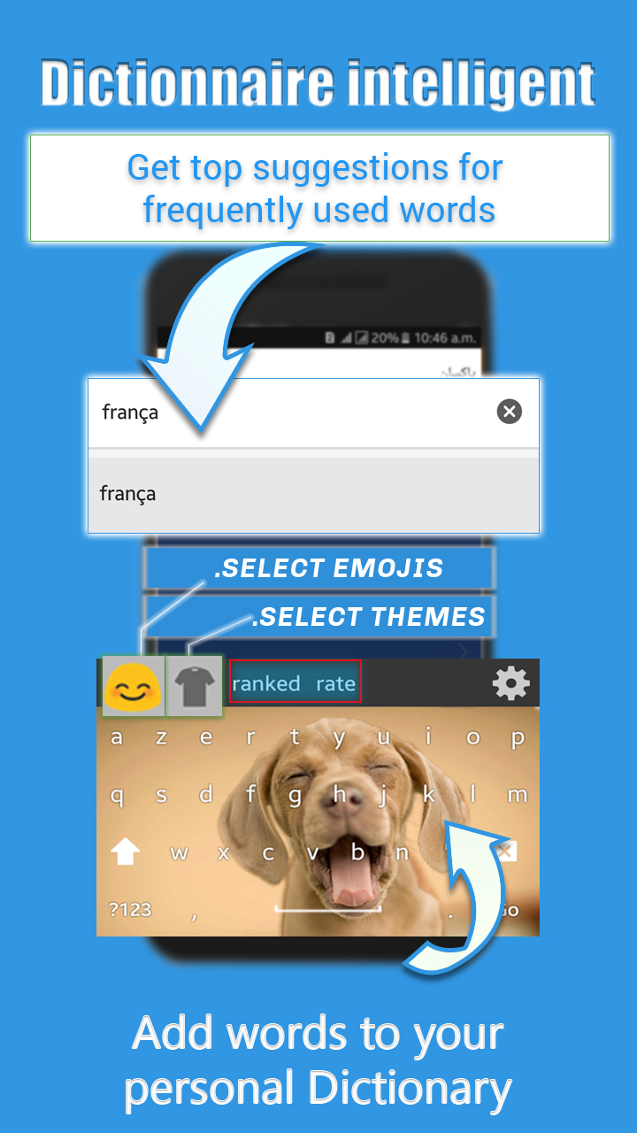 French customized keyboard allows a user to type and write in French language. Do you find it difficult to type and writing French words in your mobile custom keyboard? Looking for fancy French touch keypad App. Then this French touch keyboard is best and easy French and English language keypad for you. Best French keyboard is the easiest keyboard to write in French language. Using fast French keyboard you can write messages in local French language. Best keyboard is designed in different themes and different styles.