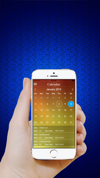 • Calendar screen show your Goal Start Dates and Goal Activity What is your Goal and How Many days to