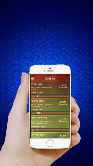 • Easy goal progress Through Goal Screen.