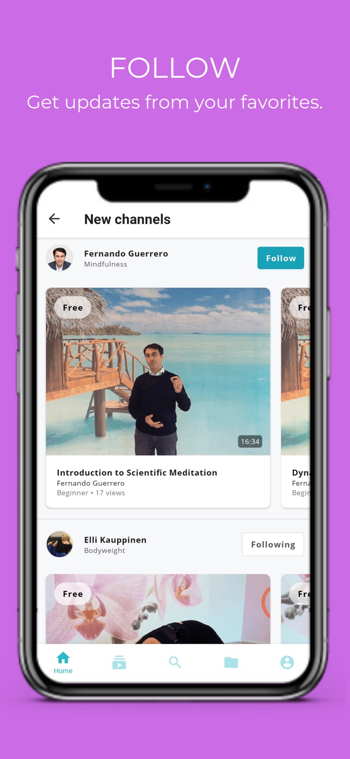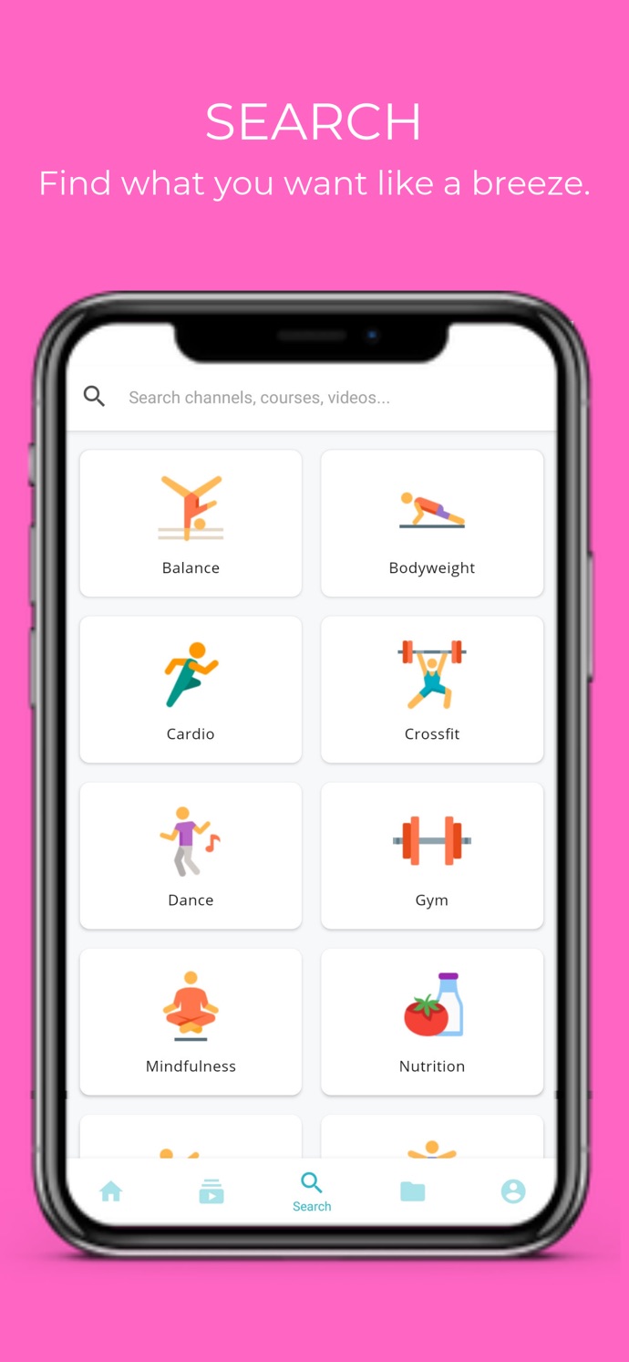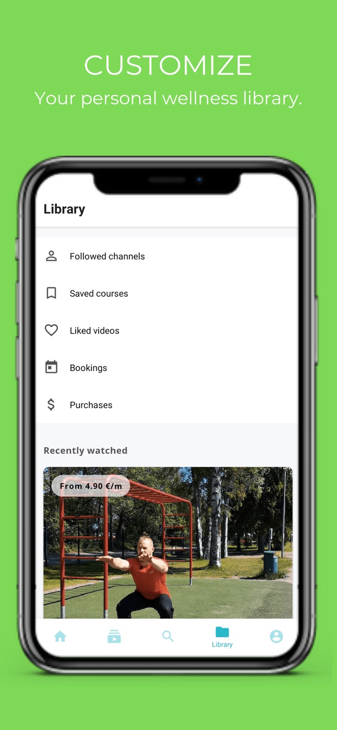 Build your personal wellness library by following your favourite channels and trainers, saving interesting health and exercise courses for later, booking live classes and liking videos. This way you don’t need to always spend time on searching for something that you want. Simply find it in your personal wellness library