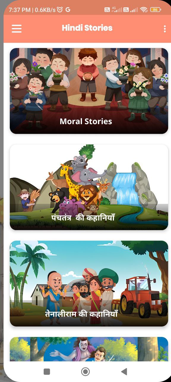 You can enjoy offline access to your favorite stories even if you do not have access to the internet. Perfect for road trips, flights, or cozy bedtimes. From enchanting bedtime tales for the little ones to thought-provoking narratives for adults, Hindi Stories ensure that there is something for everyone. Discover the joy of storytelling no matter what age you are.