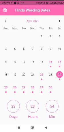 Just install & open the app, it would show you a regular calendar & along with it you would have the wedding days marked with a dot.