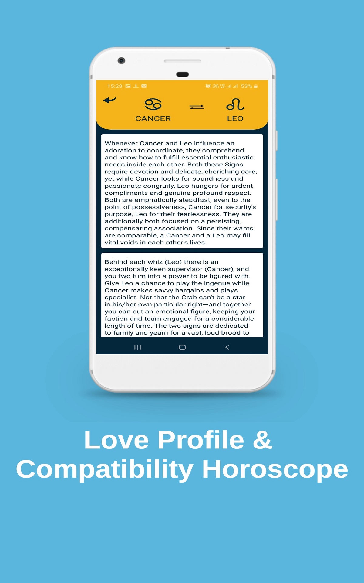 ★💑 Horoscope Compatibility -- Zodiac Compatibility is the prediction of Love horoscope of couples of two horoscope signs. By using this wonderful app users can enjoy the readings of their personal life. For an example how the life will go if a person from Libra meet with Aries.