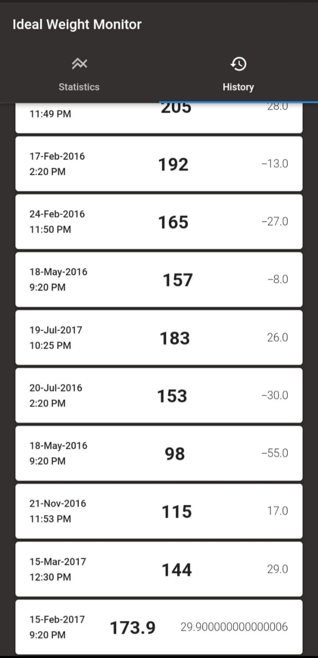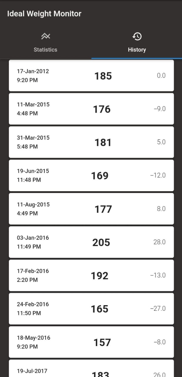 Follow the changes in your weight by recording daily and stay within your ideal weight range.