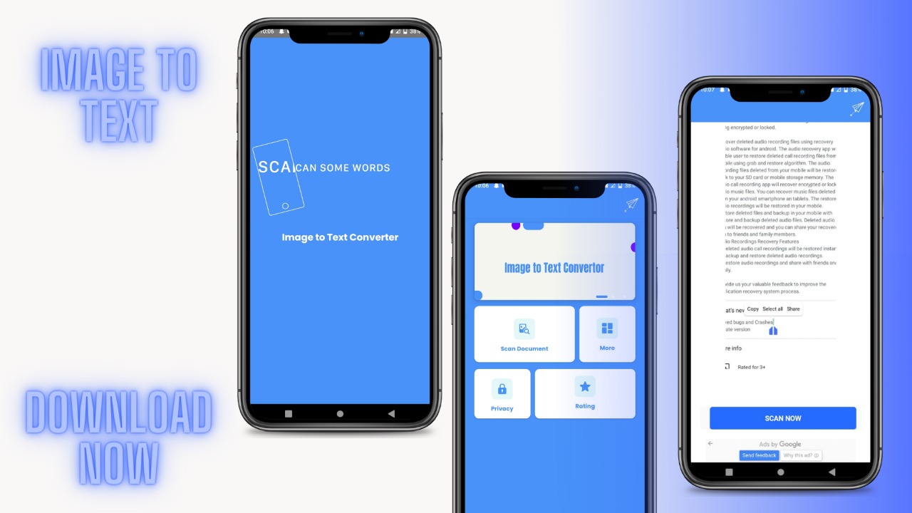 image text scanner app convert image to text by single touch operation . The content from image or PDF file can be extracted as well by using the OCR engine of the program. Take photos directly from your device or choose them from your photo gallery. Simple! As soon as you enter the text, it will be converted into a graphic right away. Image to text converter provides you multipole option for scanned image it can to edited copied to your clipboard and share it anywhere you like to. Image to text scanner is also used for pdf file you can chose the pdf document from gallery click on scan option it will generates results immediately .