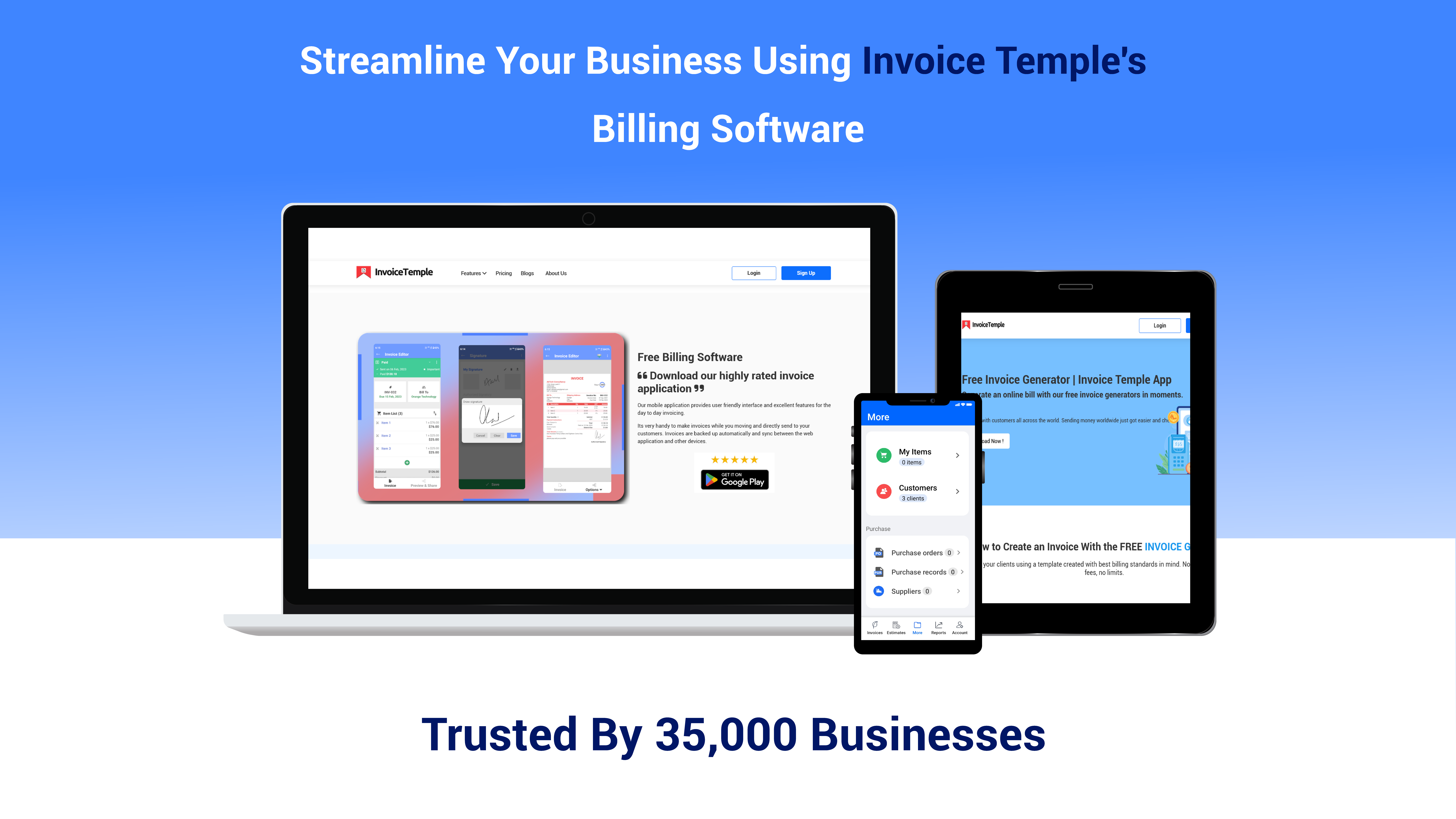 Invoice Temple app provides excellent features for the small business owners to generate professional invoices, estimates, bills, and get paid faster. It is very simple to create invoices, bills, and send invoices to your clients in minutes. The app is compatible with multiple tax systems like VAT, GST, IGST, CGST, etc. You can manage your inventory/stocks and bookkeeping in the same app. Invoice Temple also offers a free invoice maker that provides 10 free invoices/estimates/purchase orders every month, with the option to upgrade to the premium version for unlimited invoices and estimates.