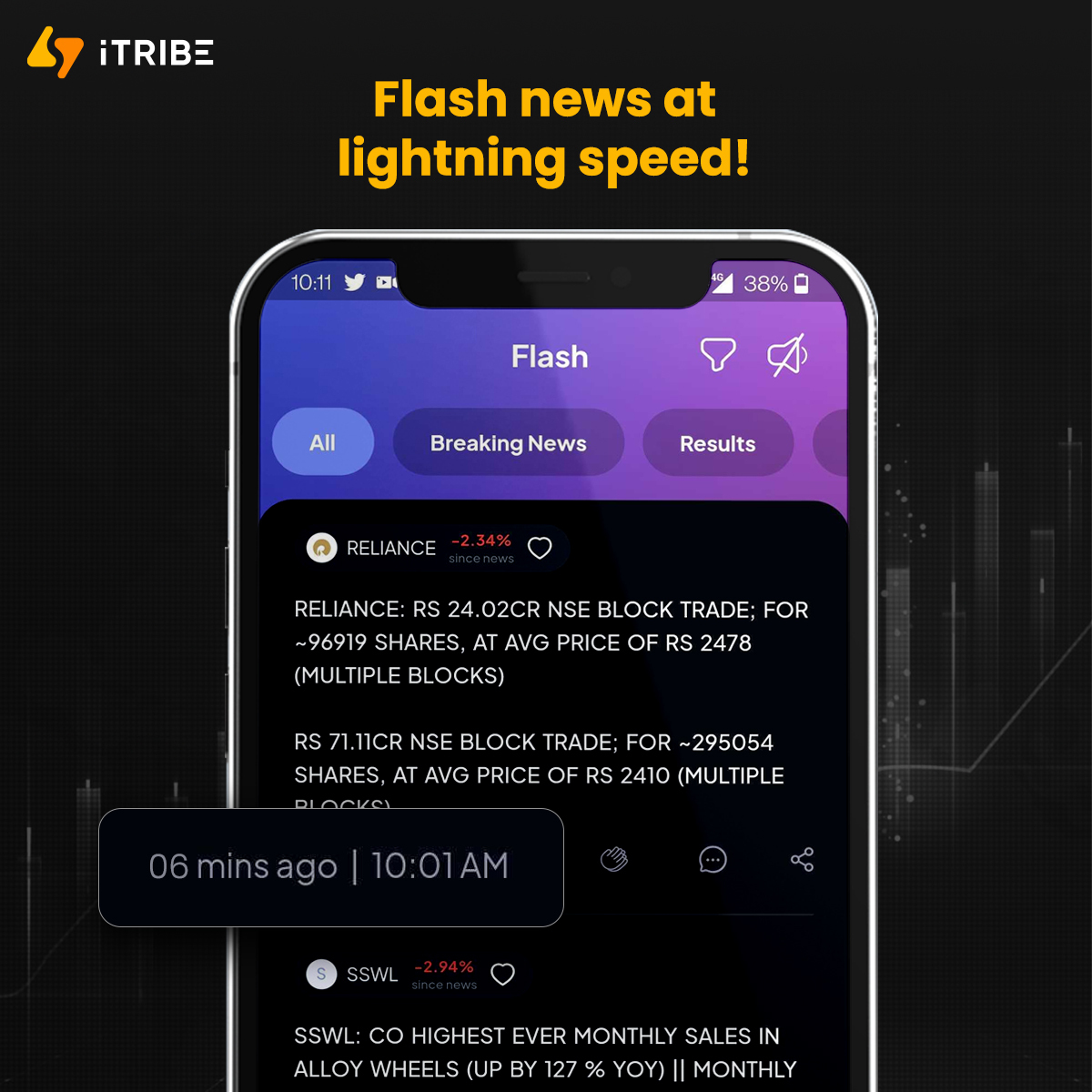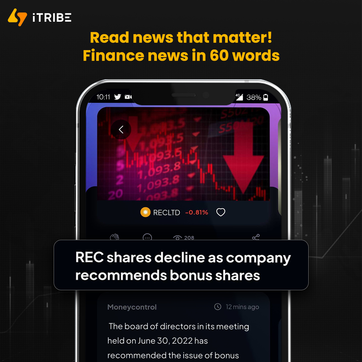iTribe brings you India's fastest actionable news from the world of business, stock market and finance in 60 words. Stay on top of the stock market with our real-time news feed and encash on breaking news. You can also get the best stock investment ideas from top financial institutions and build a healthy trading portfolio.