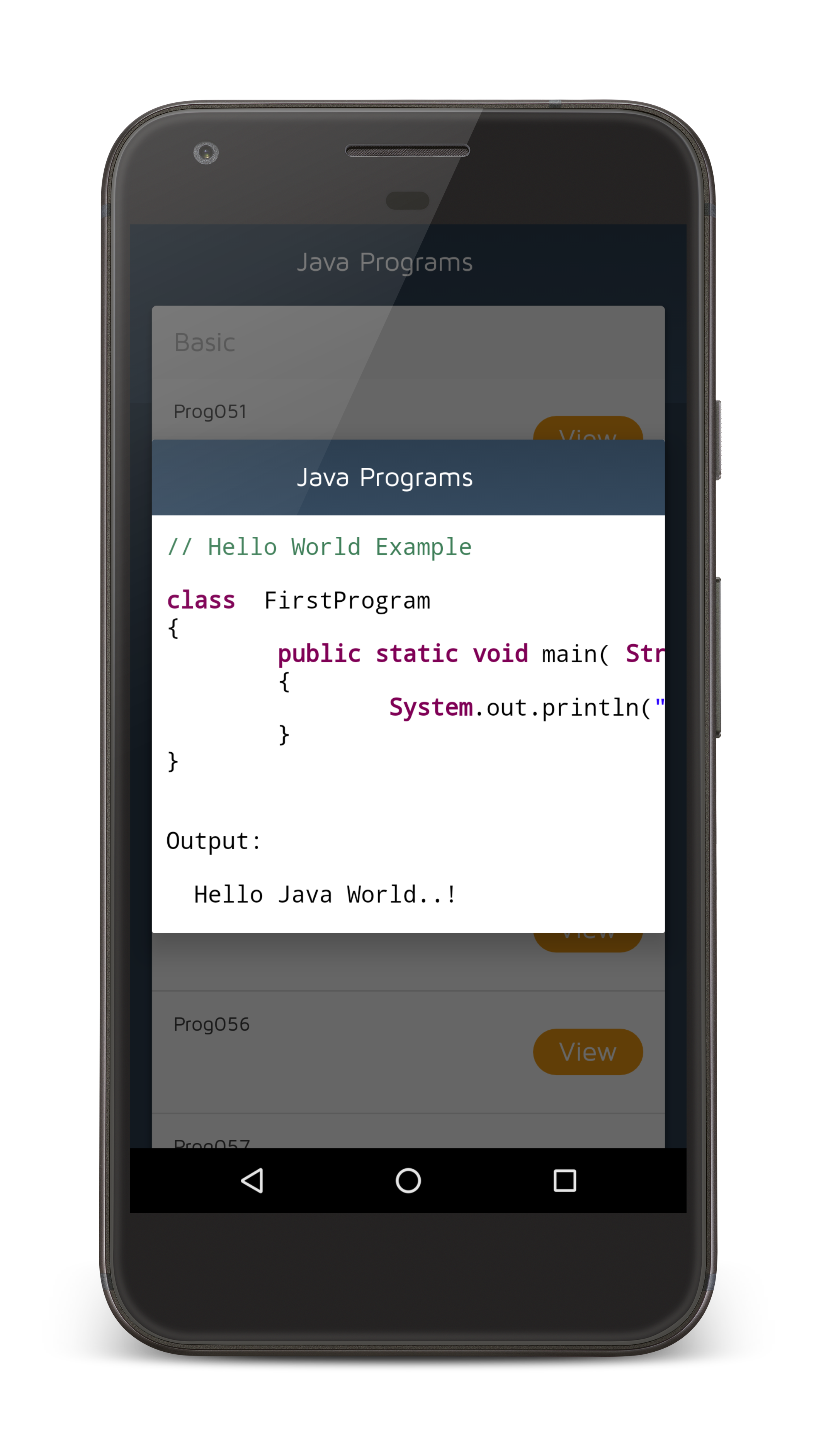 To rock java programming you must develop your skill with example or programs. Java Examples App app helps you to refer a great collection java programs on the go and Helps you improve Logical thinking of various problems related to Programming. Java Examples Application give source code and output for various Java Programs or examples.