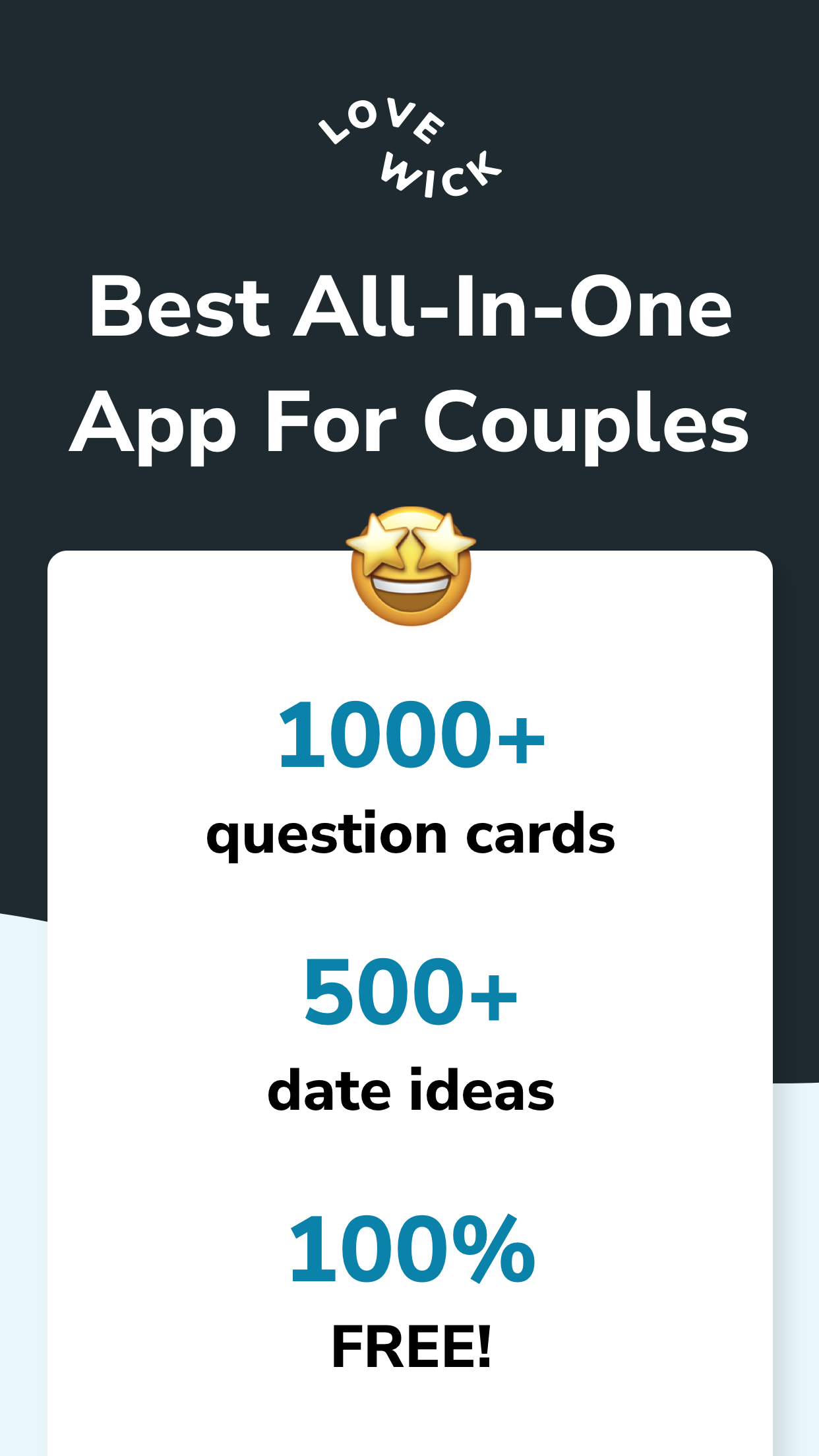 Lovewick is a free relationship app for couples that helps partners feel even closer with the internet’s largest library of fun couple questions, fresh date ideas, & research-inspired relationship advice.