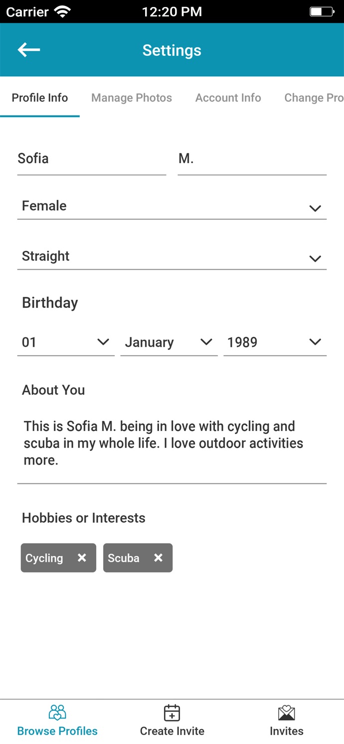 ● Customize your profile by adding your hobbies, dating preferences, profile image, description and interests