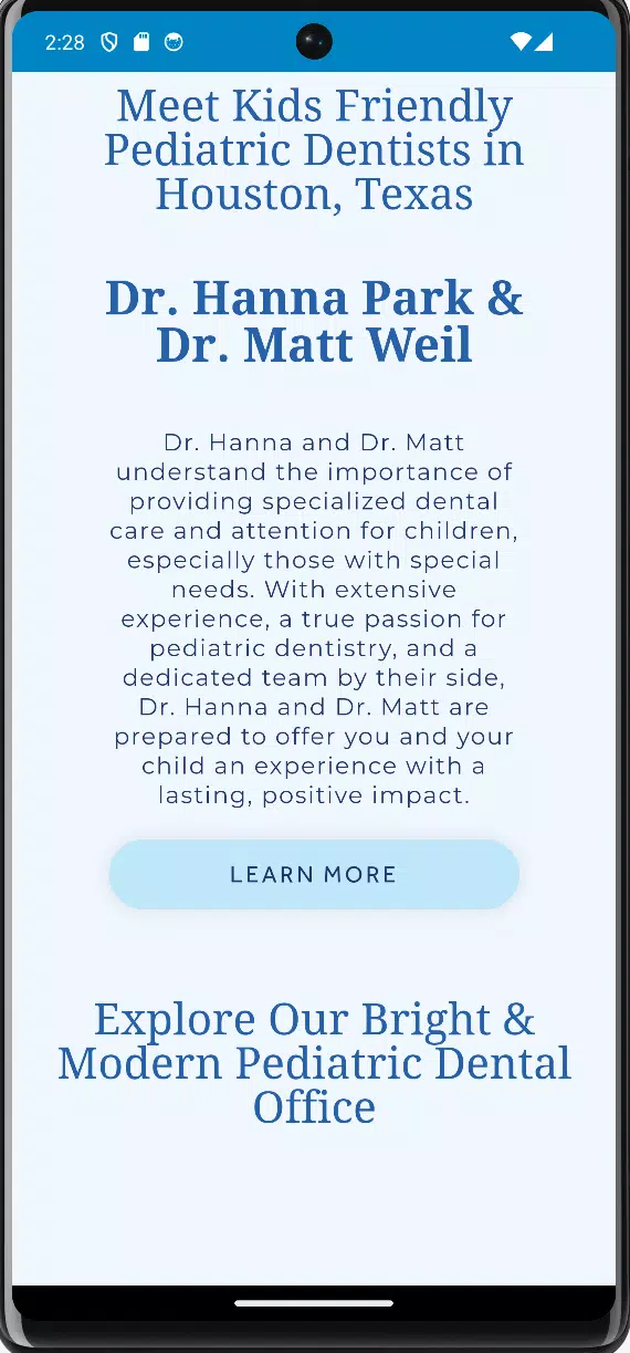 Memorial Children’s Dentistry provides specialized pediatric dental care in a friendly, welcoming environment. The app offers easy appointment scheduling, access to dental resources for children, and direct communication with experienced pediatric dentists. It ensures personalized care, dental education, and tips for maintaining your child’s oral health, all designed to make visits stress-free and comfortable.