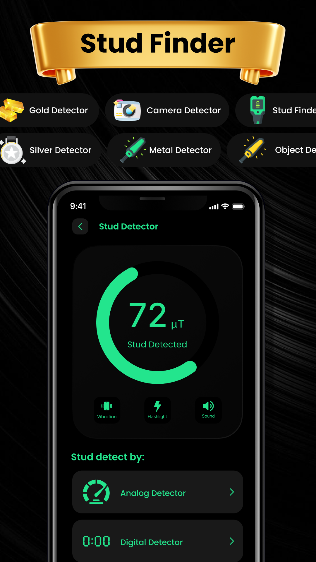 Metal Detector app with sound provides sound signals when metal objects are detected, guiding you to the location of the hidden items. Whether it's a hidden pipe in the wall or a metal object buried in the ground, the metal detector camera app can help you find it effortlessly. Metal Detector & Finder ensures you can find and identify various types of metal objects with ease.