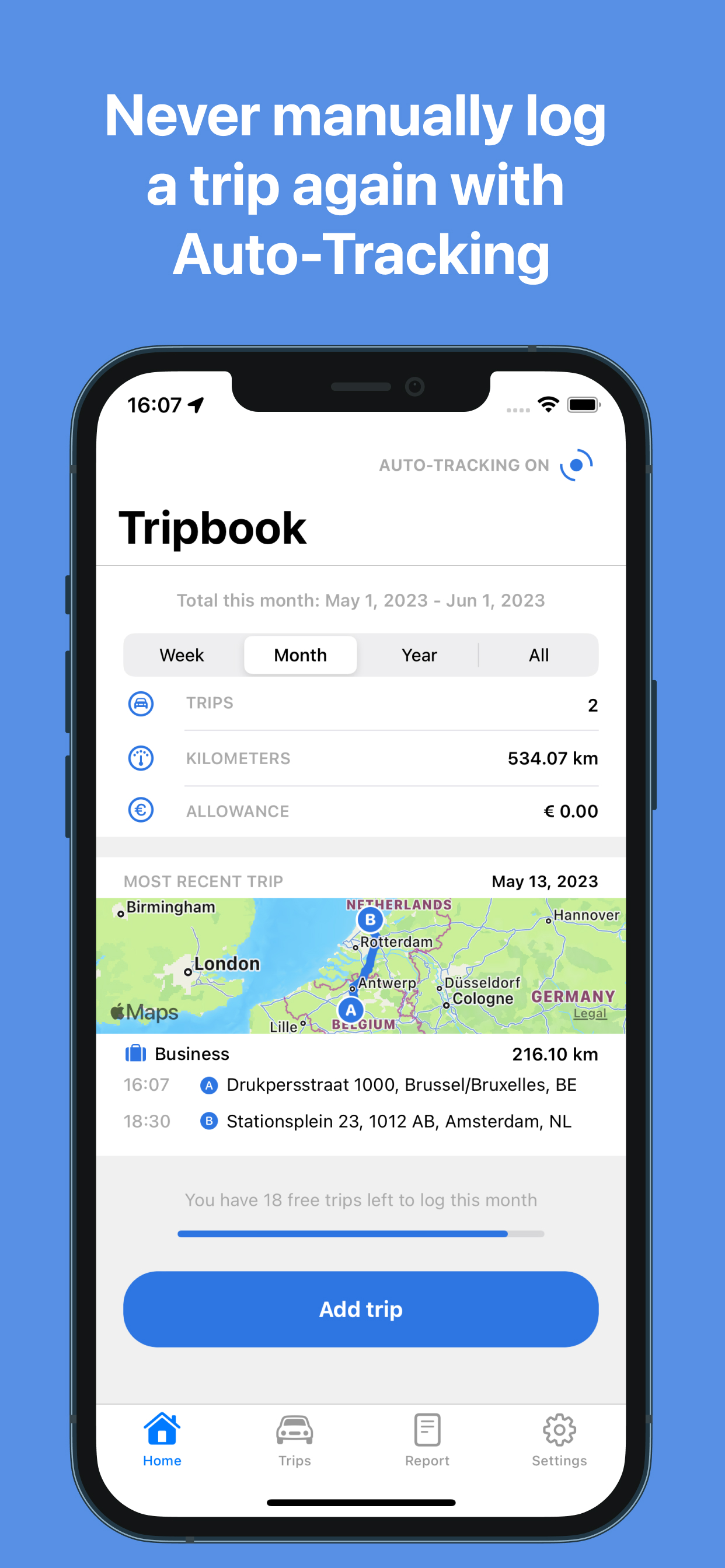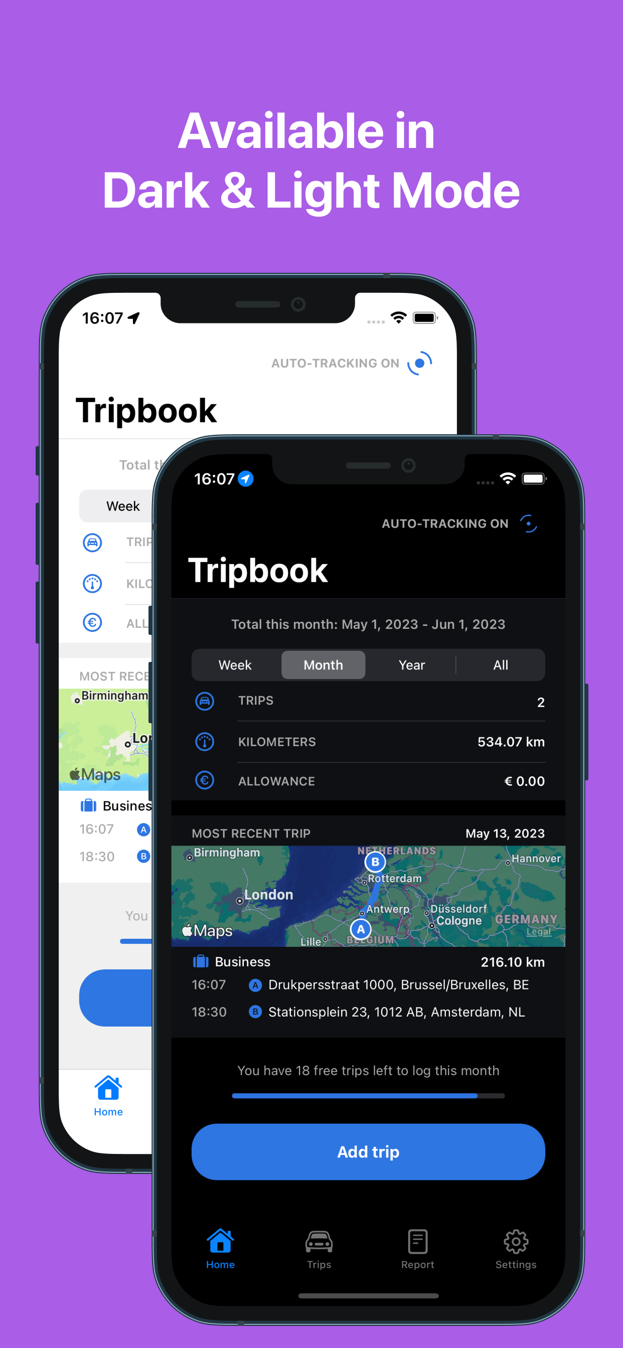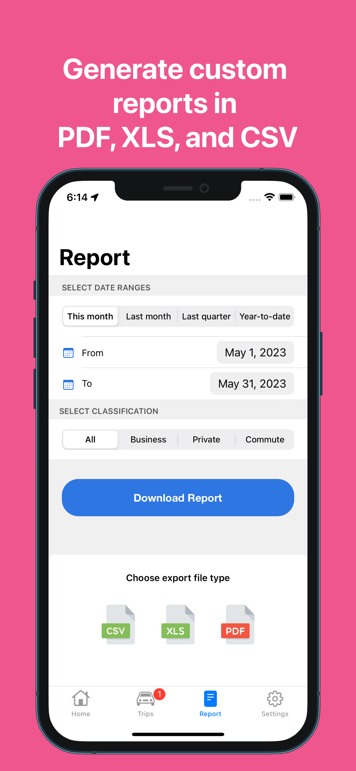 ▶ COMPREHENSIVE REPORTING: Generate detailed reports (XLS, CSV or PDF) of your trips with Tripbook. The app provides comprehensive reporting capabilities, allowing you to gain valuable insights into your travel patterns and mileage for tax purposes or expense reimbursement.