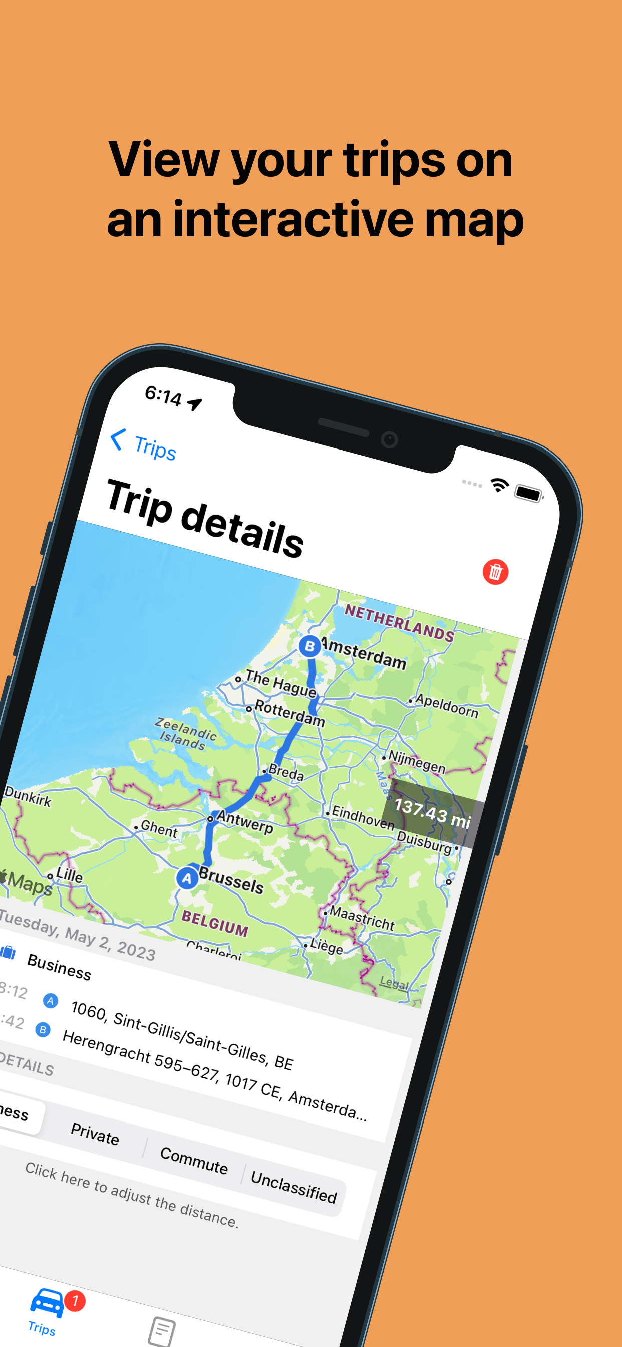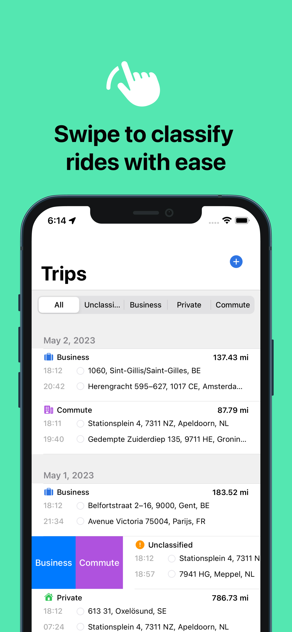 ▶ EASY TRIP CLASSIFICATION: Classifying your trips is a breeze. You can easily categorize trips as zakelijk, privé, or woon-werkverkeer (business, personal, or commuting) with a simple swipe, streamlining your mileage management.