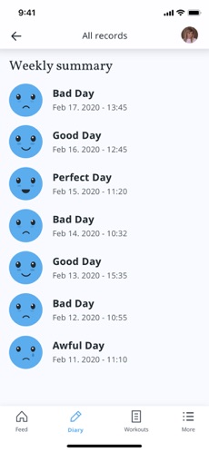 - Diary, a psychotherapeutic journal with daily submissions and analytics;
