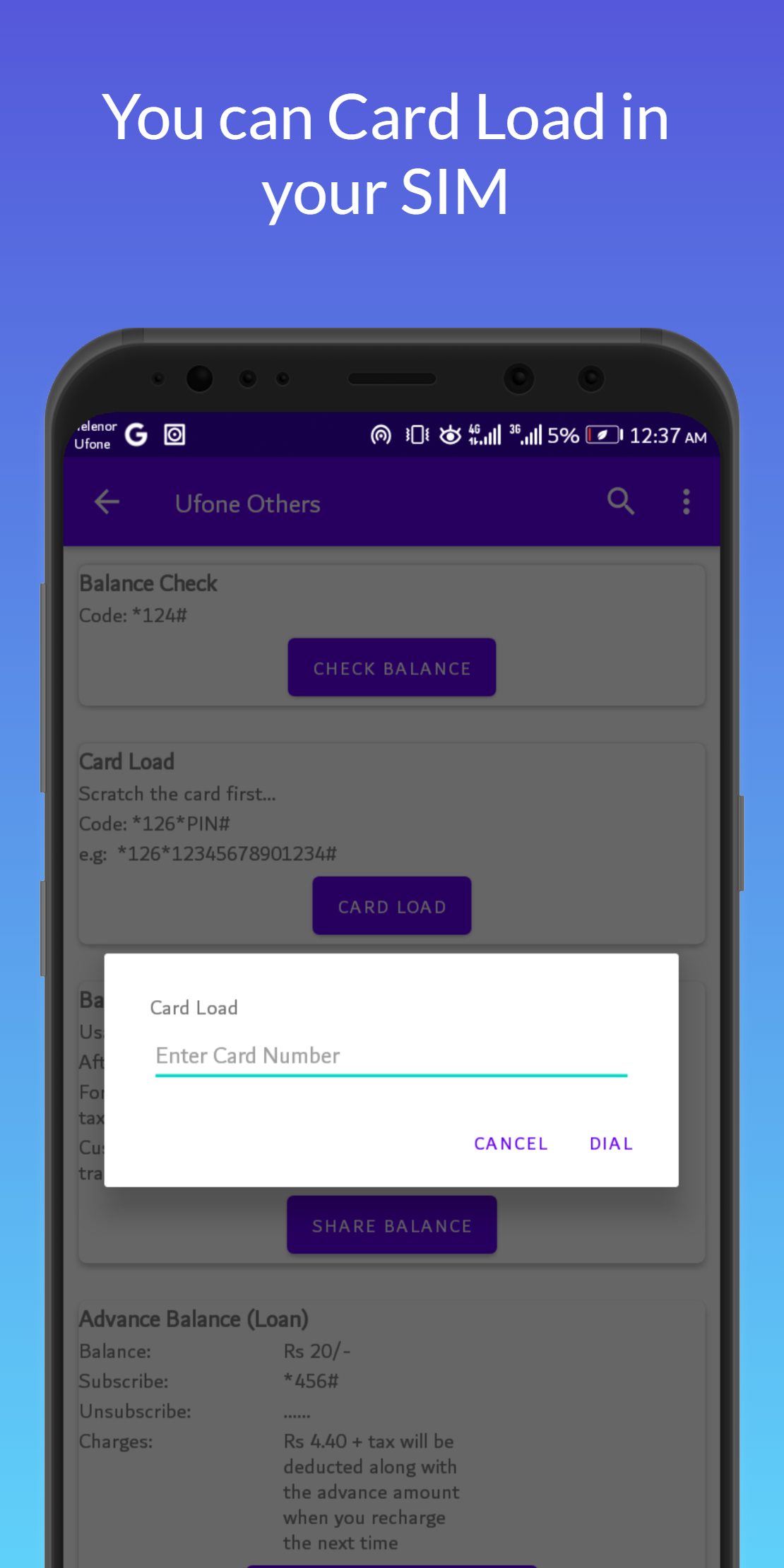 Another interesting and useful feature of this application is you just need to enter your card number in the Card Load box of the application and your Card will be loaded, without entering * and #. And even you don’t need to remember codes of Card Load of any Network available in Pakistan. You can Load following Cards with the help of this application.