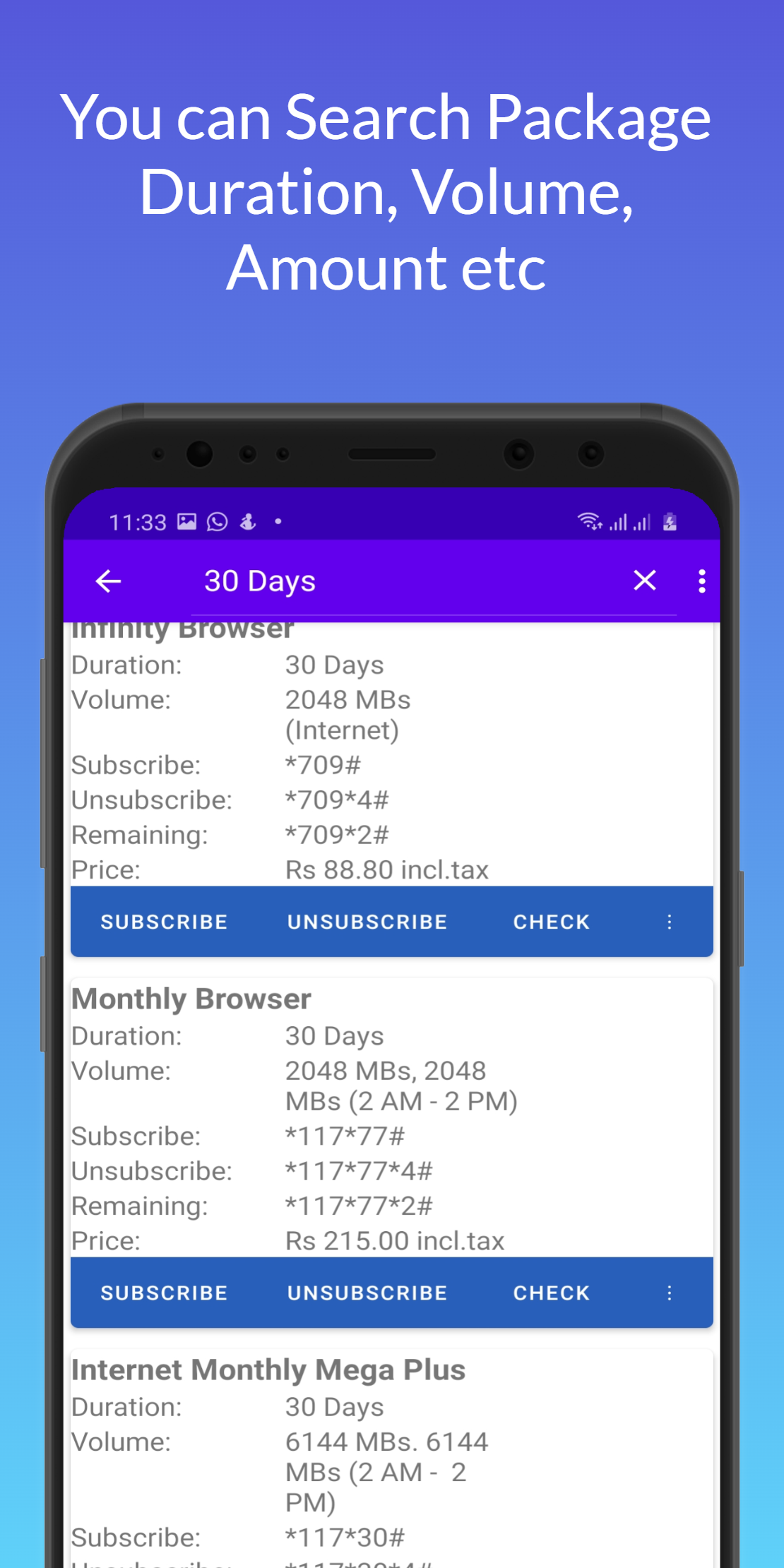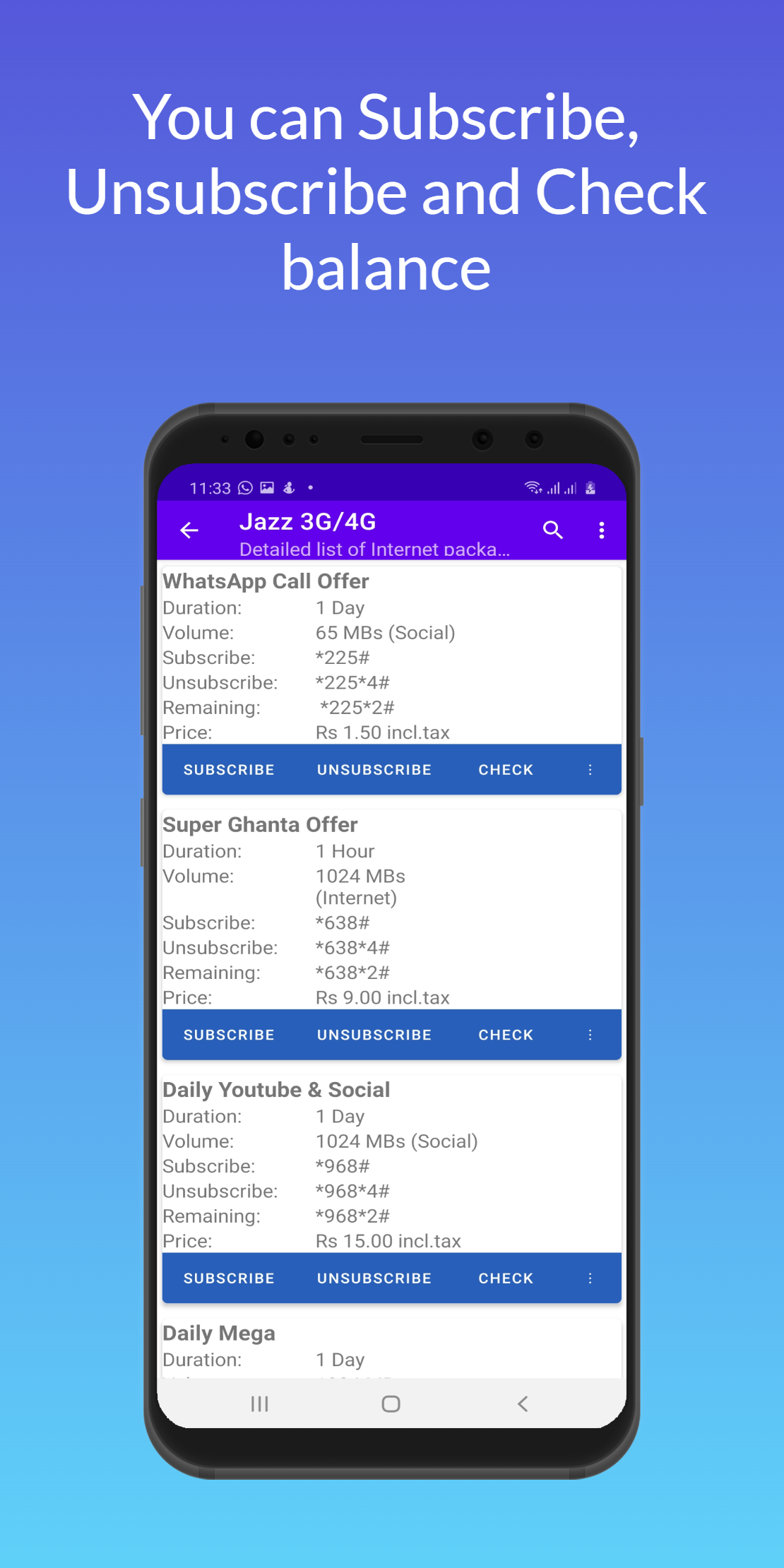 You can Subscribe and Unsubscribe all packages with just one click without remembering codes of each package.