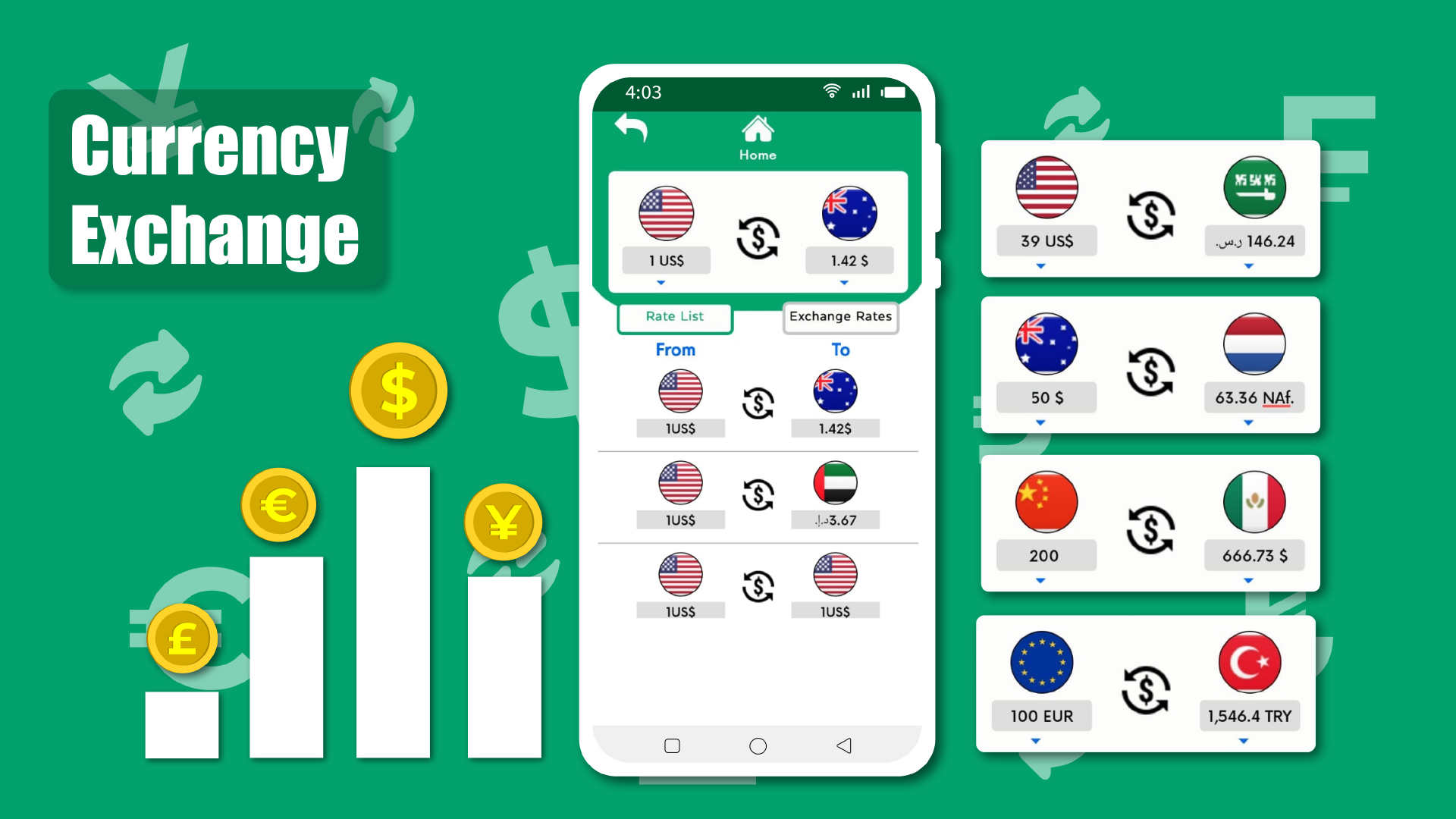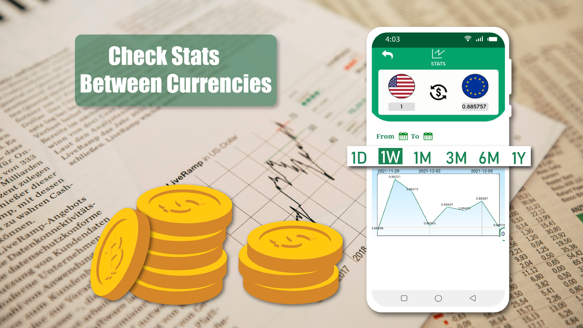 This money conversion live app is so simple to use. Enter the value like pounds to dollars, and select the desired currency and get your converted currency rate from dollar to euro as well as euro to dollar. You can choose & add up to 15 currencies that are visible on the main screen while using this currency exchange rates app. You can also check currency rates conversion dollar to peso, cad to USD as well as aud to USD between different currencies by using this money changer app.