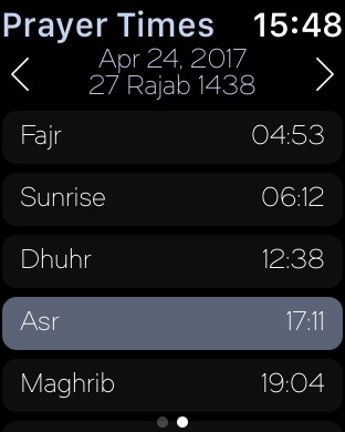 - Show the times for the Fajr, Sunrise, Dhuhr, Asr, Maghrib and Isha prayers