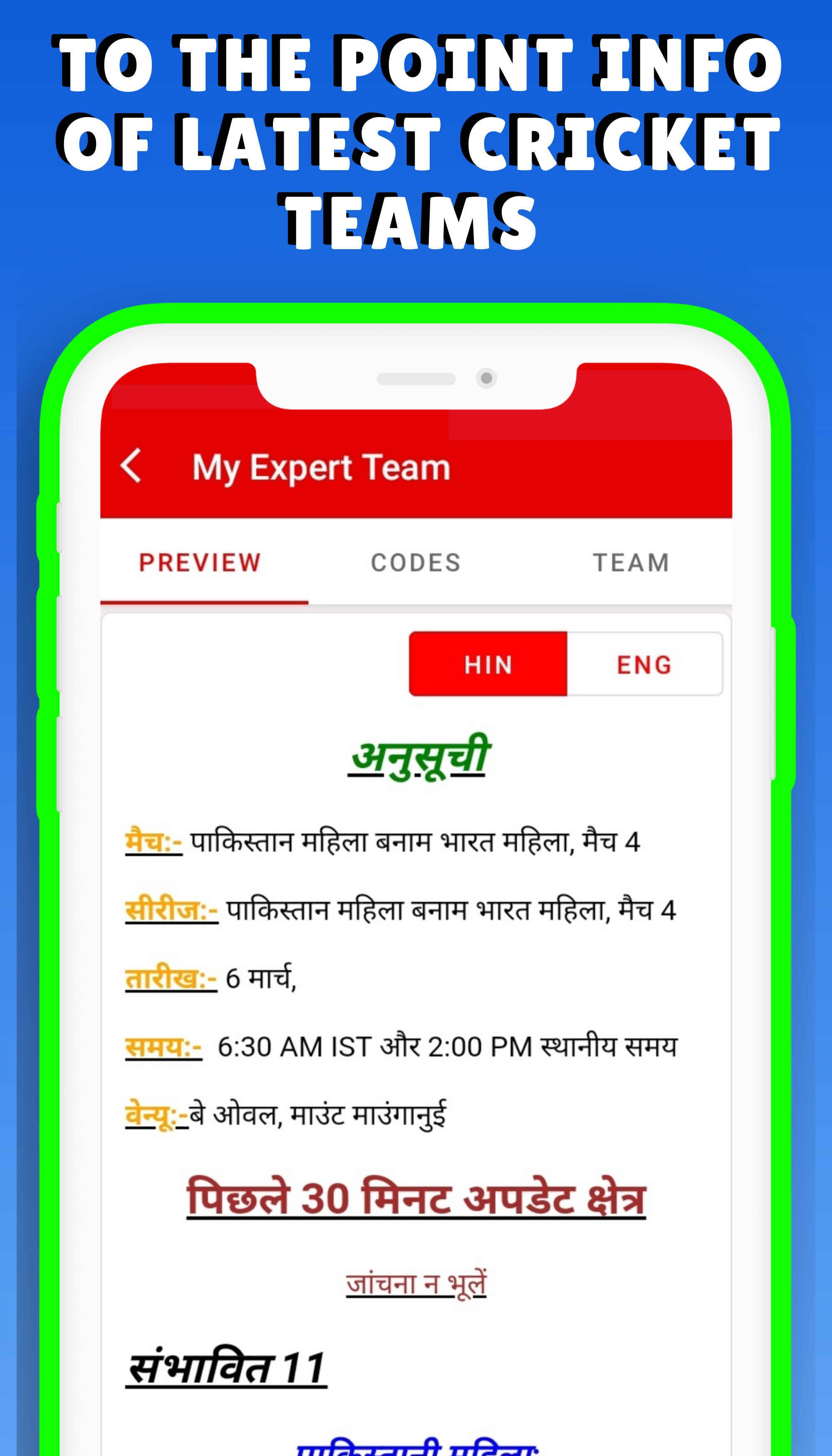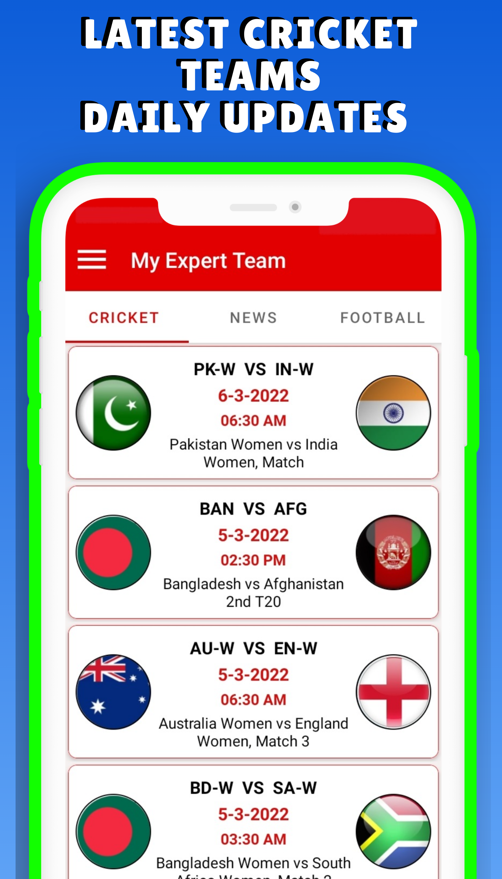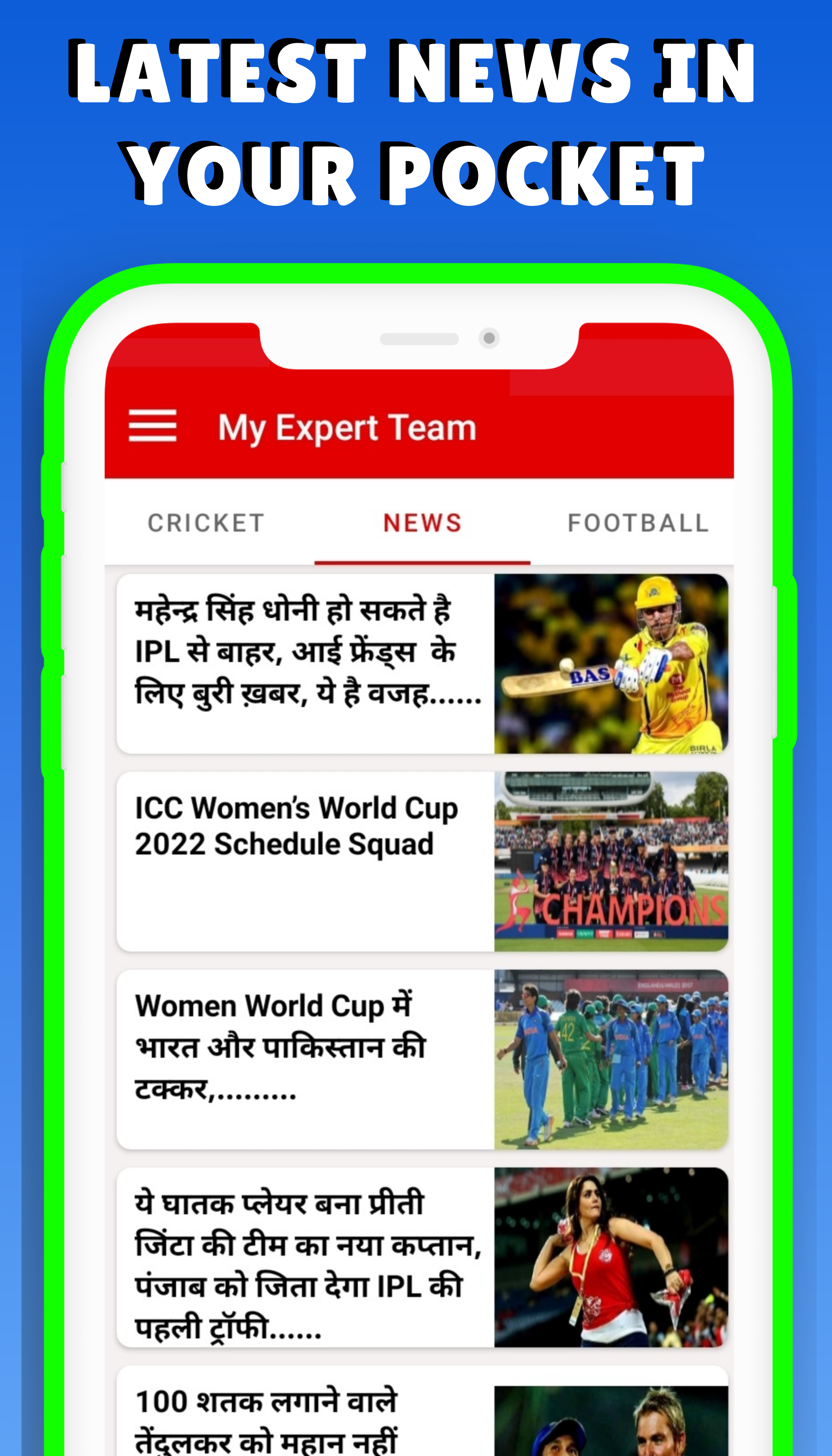 My Expert Team App Provides Fantasy Team and Prediction for Cricket & Football with Tips to Winning Along with Cricket & Football Latest News.
