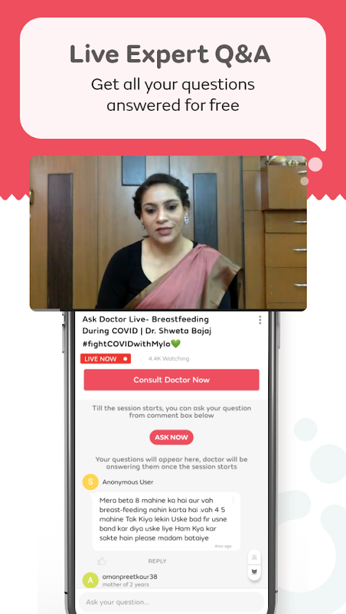 You can ask questions that you can't wait to ask your doctor and get answers 24*7 🕘 from a super-supportive member on the Mylo Pregnancy and Baby care app WITHIN 5 MINUTES.