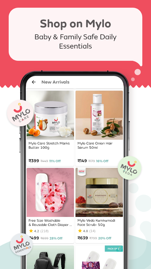 Buy high quality products from Mylo and join the group of 10+ million young parents who save upto ₹5000 every month by using Mylo Coins. Read trusted reviews by verified parents. You can shop from a wide range of pregnancy, baby care & self-grooming products like- Stretch Marks Cream, Baby Carrier, Pregnancy Pillow, Under Eye Cream, Reusable Cloth Diaper, Hair Fall Control & Skin Care Products to name a few.