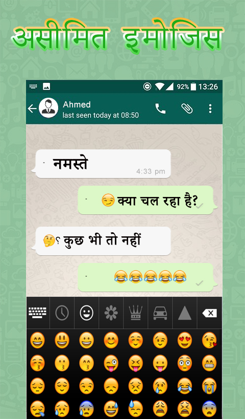 Enjoy 1000+ cute emojis, Hindi Stickers,Indian flag with Keyboard English Hindi.