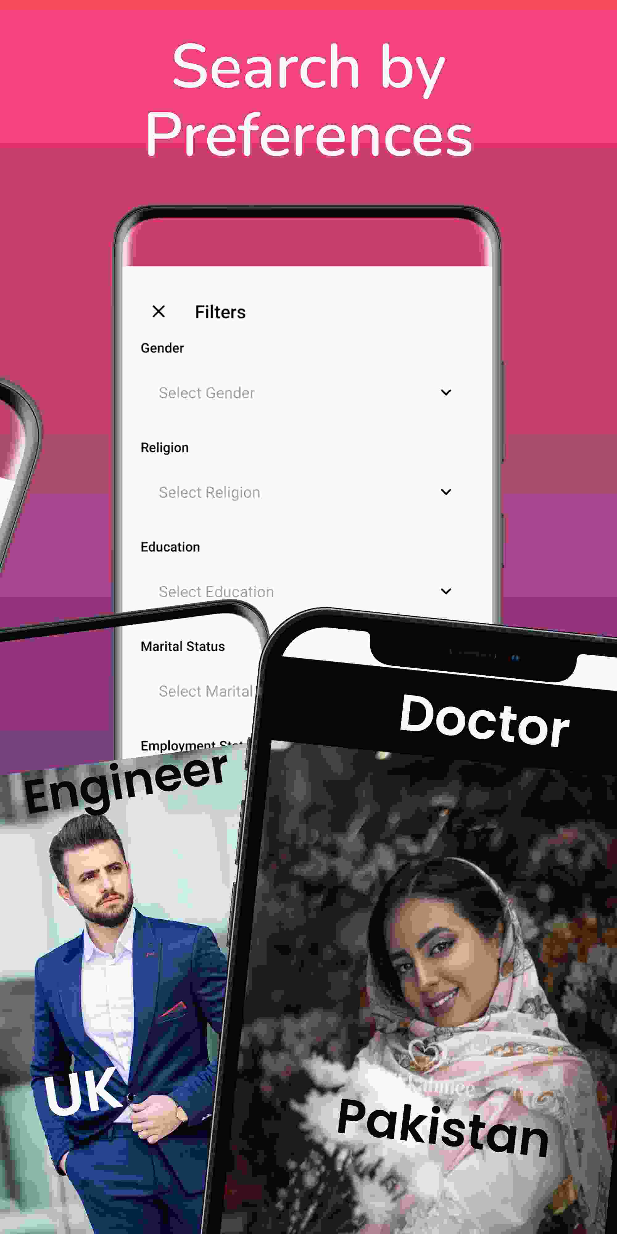 ✅ Brilliant AI search filter(s) to search profile(s) by age, gender, caste, religion, profession, country, and more
