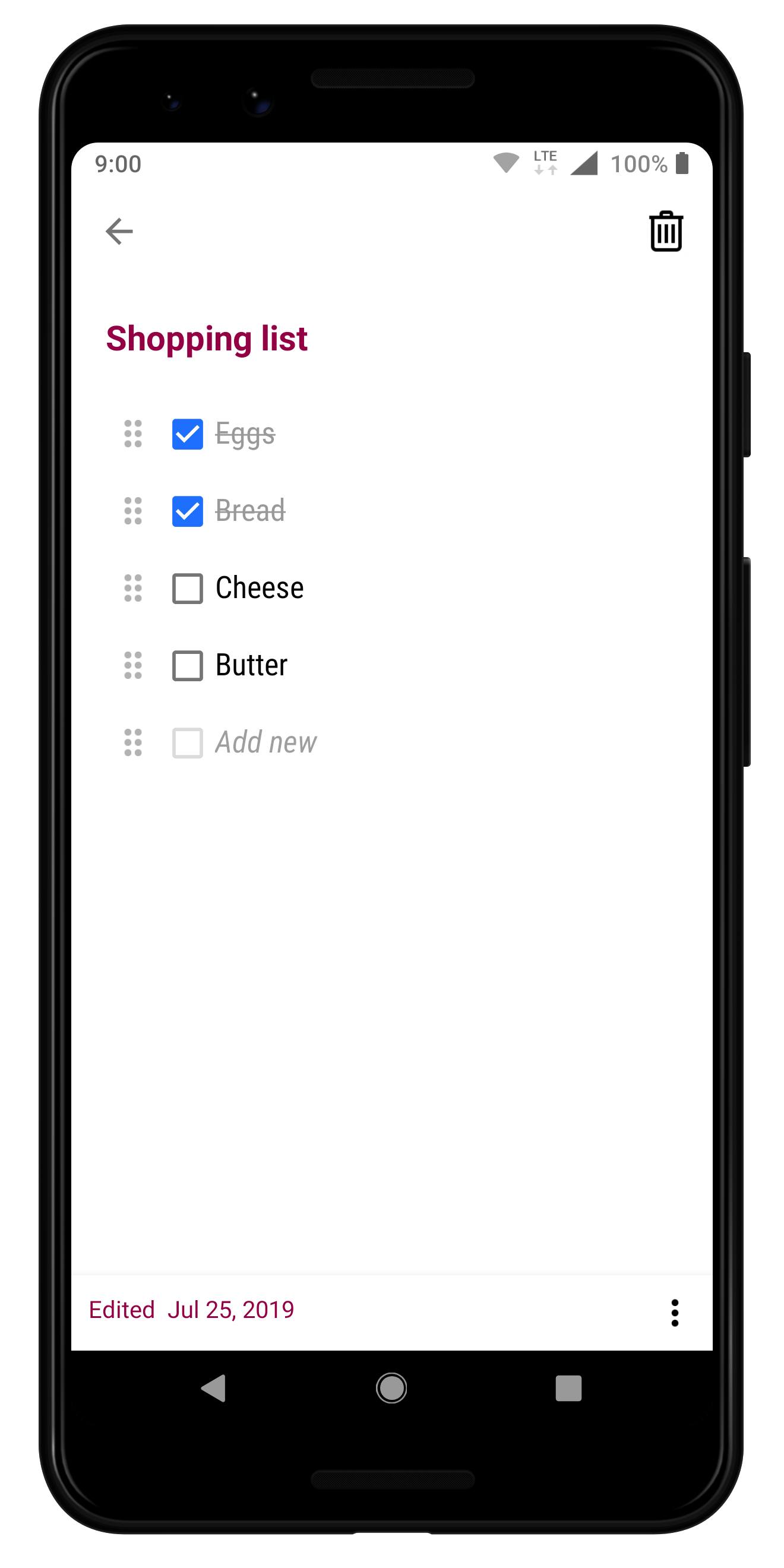 With Notes Sync you can sync all of your notes, to-do lists and reminders to your own Google Drive or Dropbox accounts. So, everything is synced across your devices and backed up to the cloud. But the best part is, everything goes directly from the app to your account. Also your data can be encrypted with AES 256-bit encryption. And nothing goes through our servers. This ensures Total Privacy.
