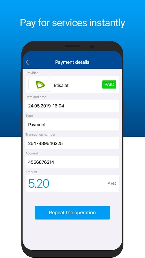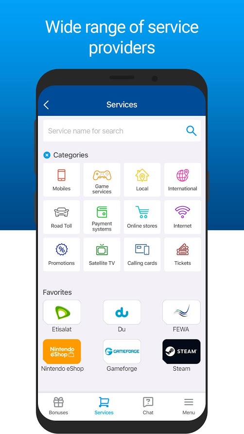 Etisalat, Du, transport fees, public utilities, and more are connected to our mobile wallet anytime and anywhere.