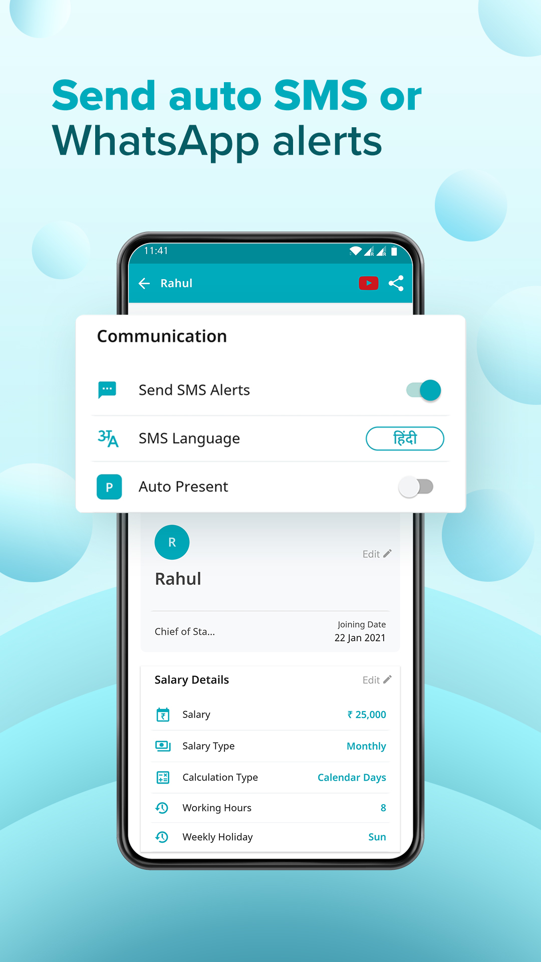 It’s not just a free app or bahi khata but also 100% secure attendance app. And, the data is auto-linked to your mobile number to keep a safe record of it