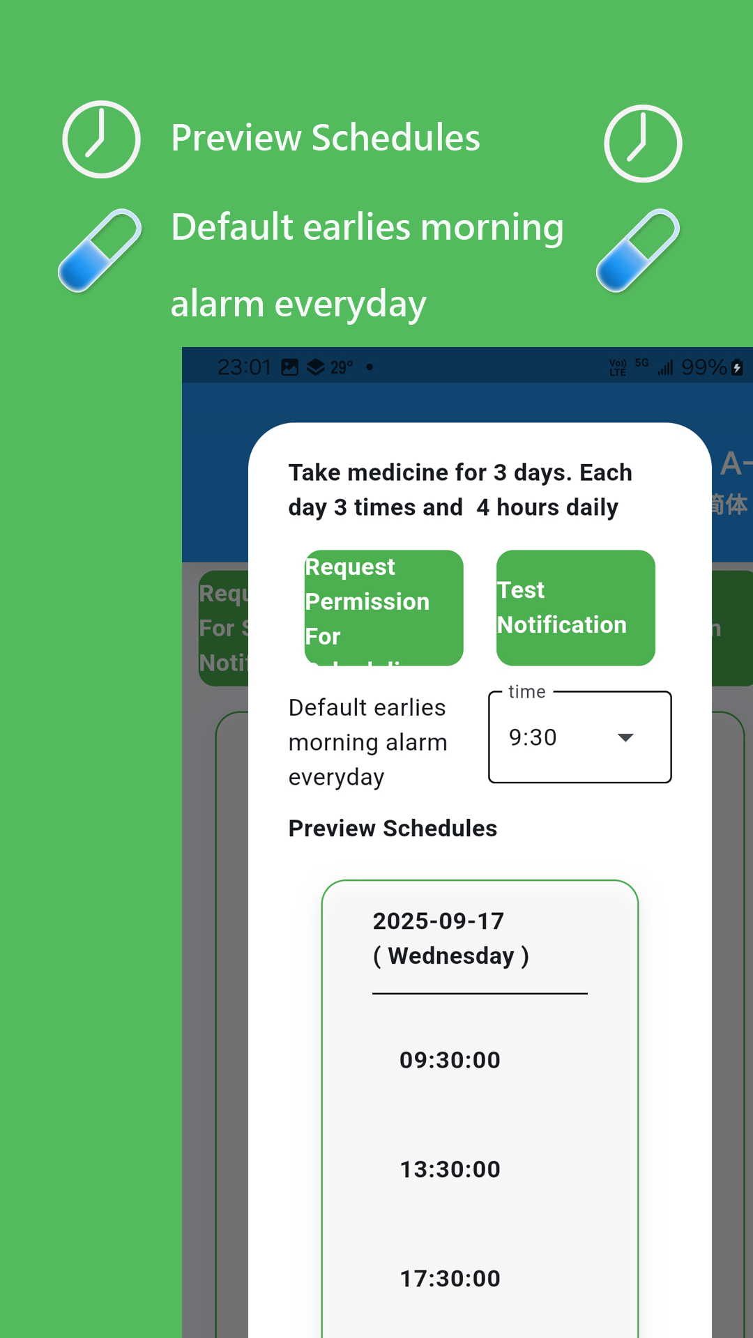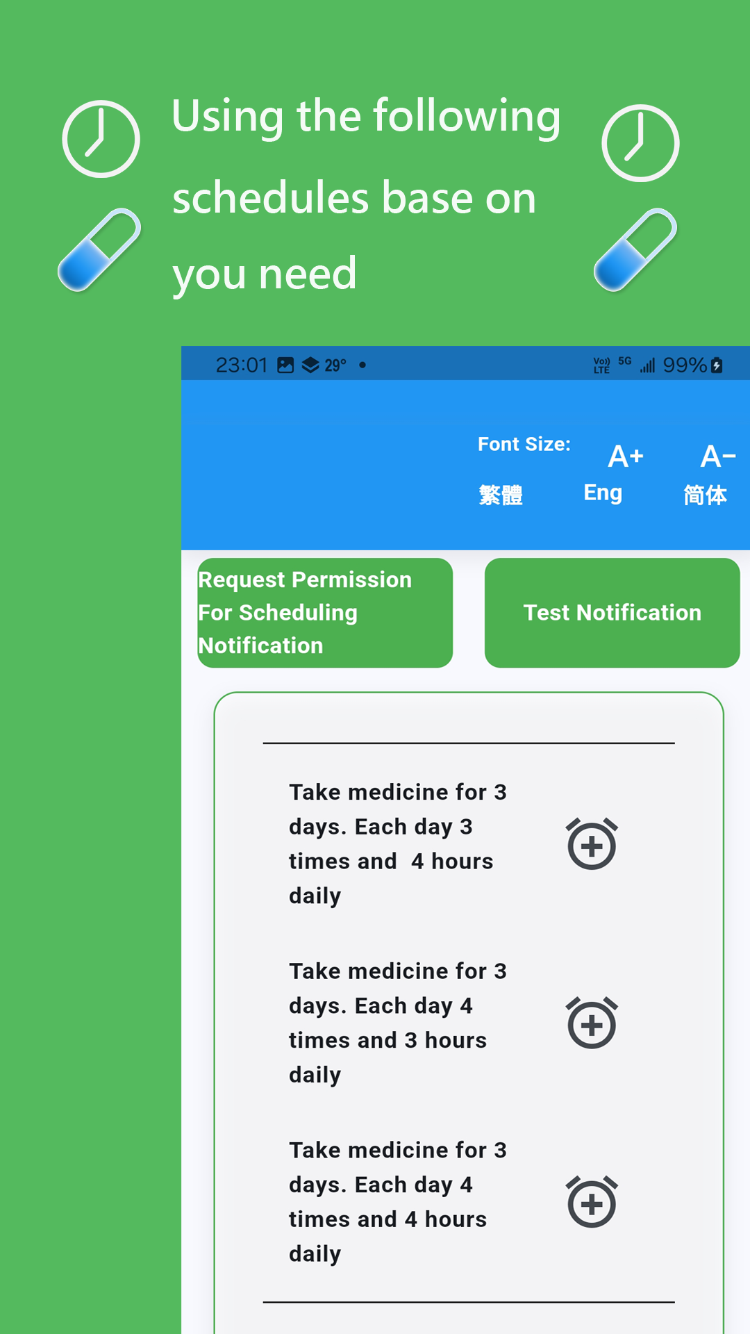 Do you always forget to take medicine? This app "Ontime Hint" can help you. Just a few clicks, you can remind yourself to take medicine by setting alarm.
