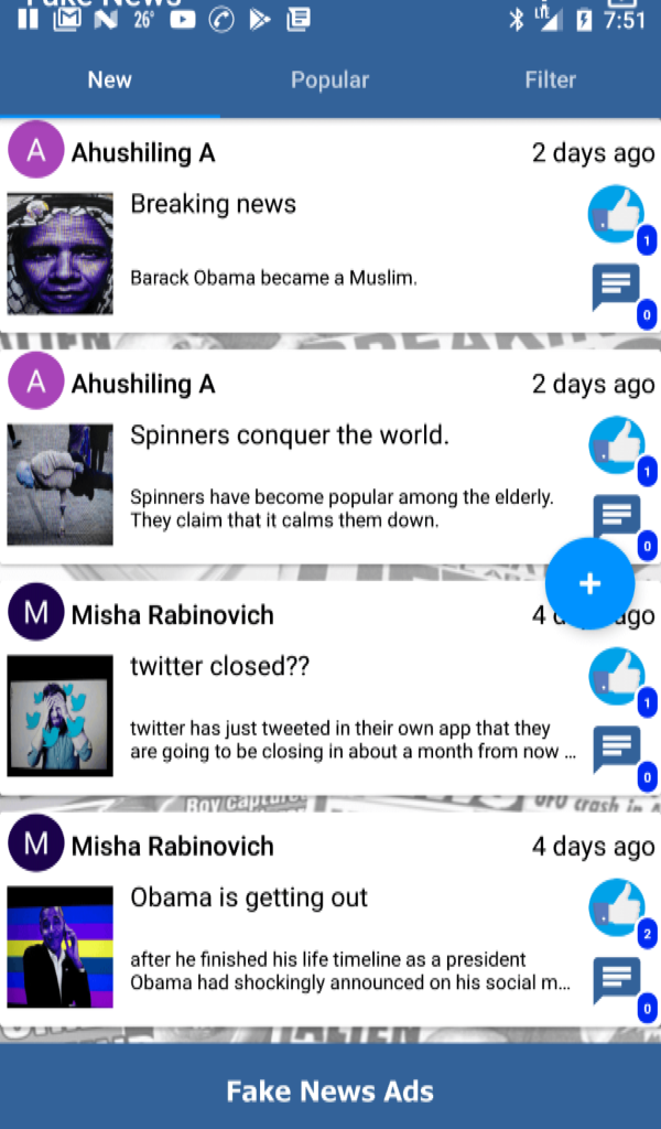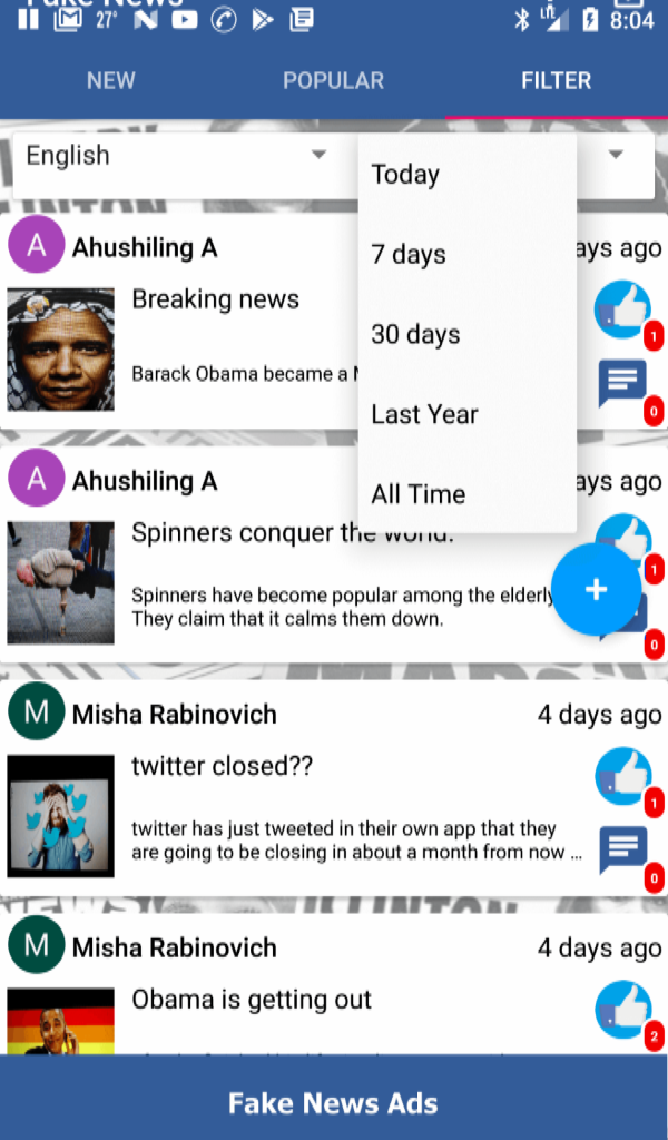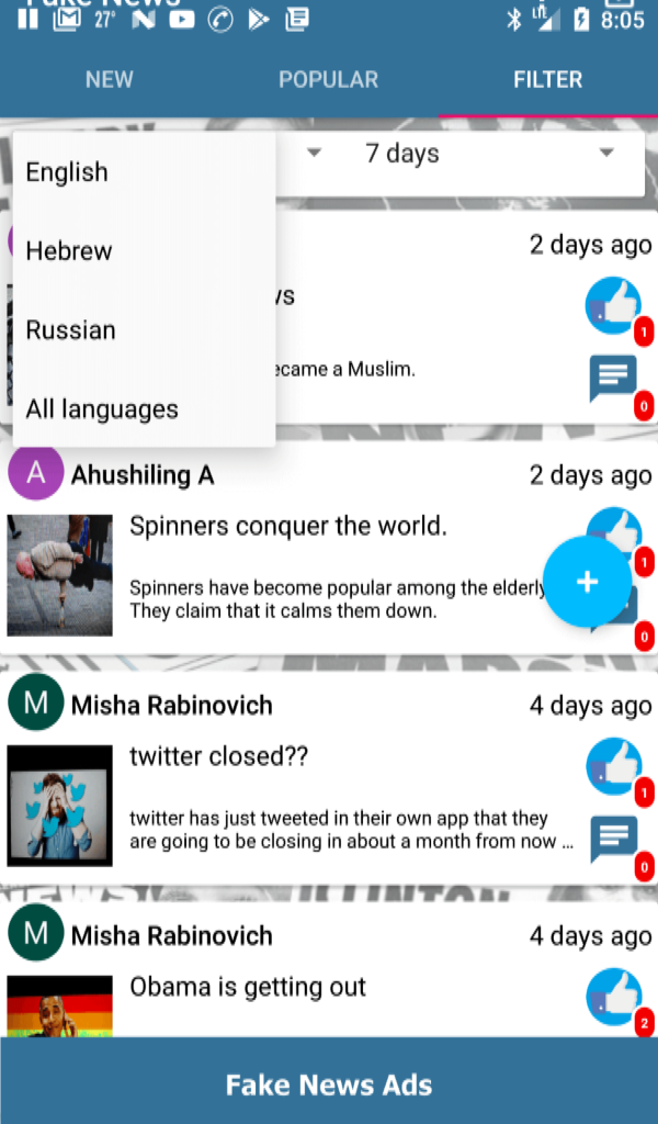 How it works is very simple: first you create an account. Then, once you've accessed the app, there's a menu to read the most recent or the most popular news or messages or apply a filter to read whatever you fancy. You can filter by language and publication date or read other bonkers news to get inspiration for your own.