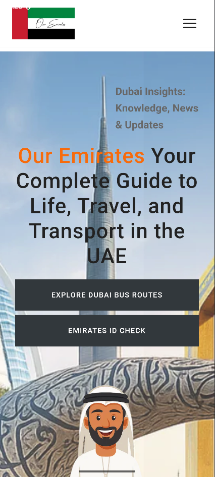 Our Emirates is your handy guide to life, travel, and transport in the UAE. Explore detailed Dubai and intercity bus routes, metro and bus stations, top areas and attractions, plus easy tools to check Emirates ID status, fines, tolls, and SIM cards and more—all in one place.