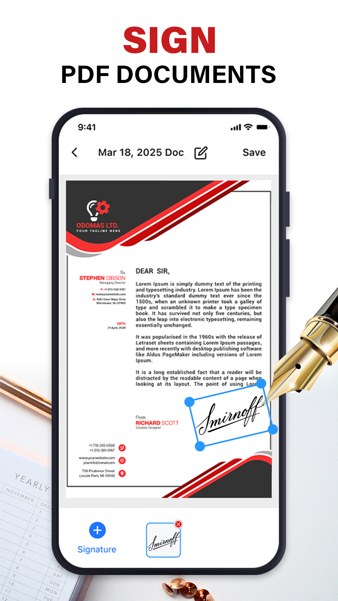 Select photos from your gallery or scan documents using the camera. Turn images into PDFs in seconds. You can edit, sign, and save them easily.