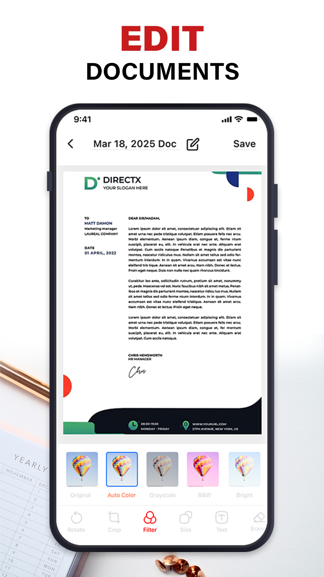 Scan receipts, notes, and paperwork using your phone camera and save them as PDF files.