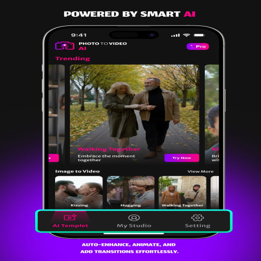 Want to surprise your crush, lover, or become an overnight social media sensation? PhototoVideo.AI is an ingenious app that transforms images into hyperrealistic, high-quality videos of you kissing, hugging, and dancing with anyone. Whether it's creating an unforgettable romantic moment or sharing funny, viral-worthy content on social media, our app has intriguing video effects, filters, and trends that open doors to innovation like never before.