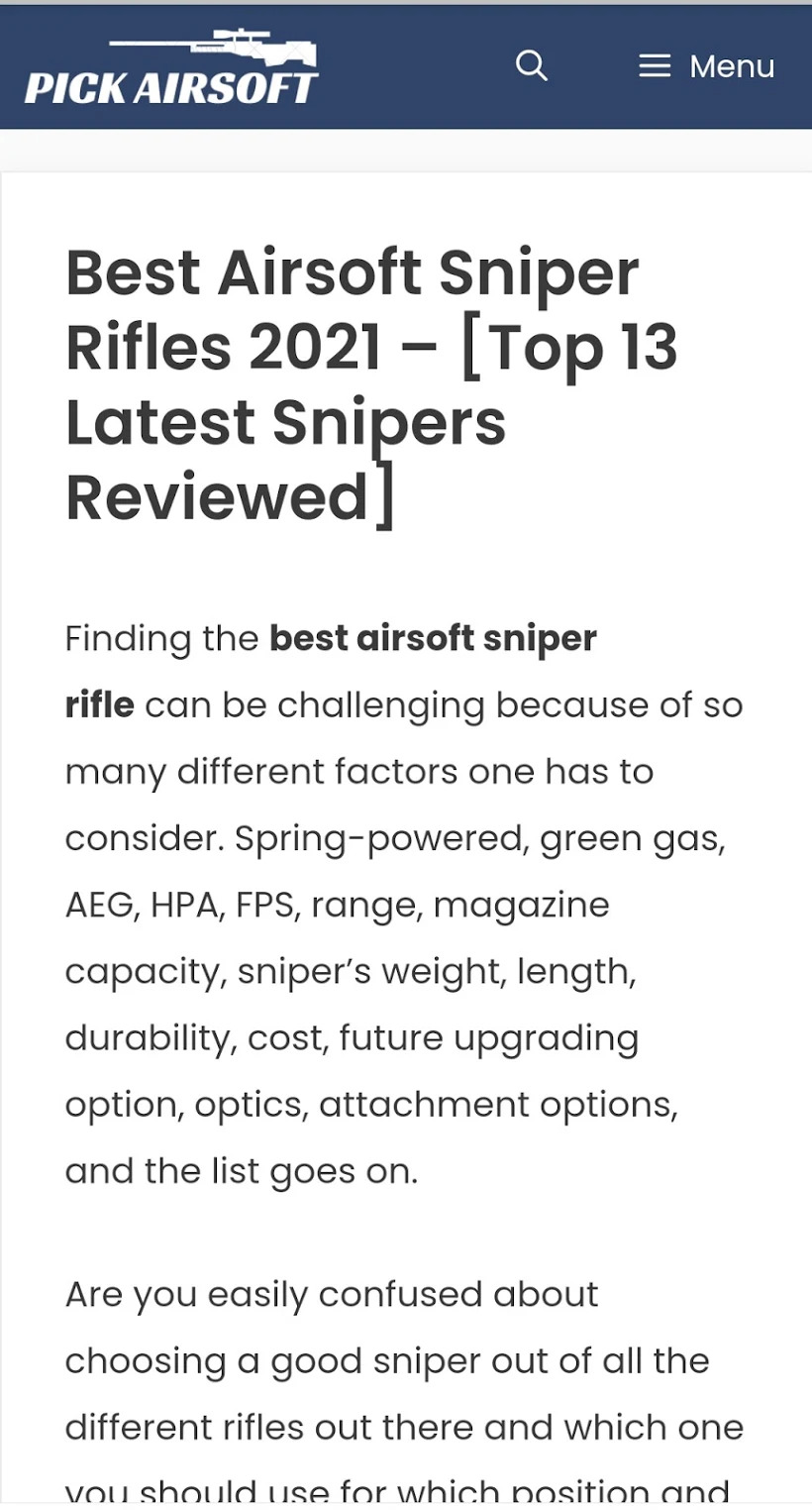 Here at pickairsoft, we review airsoft snipers in detail and mention the technicalities one must know before making the purchase.