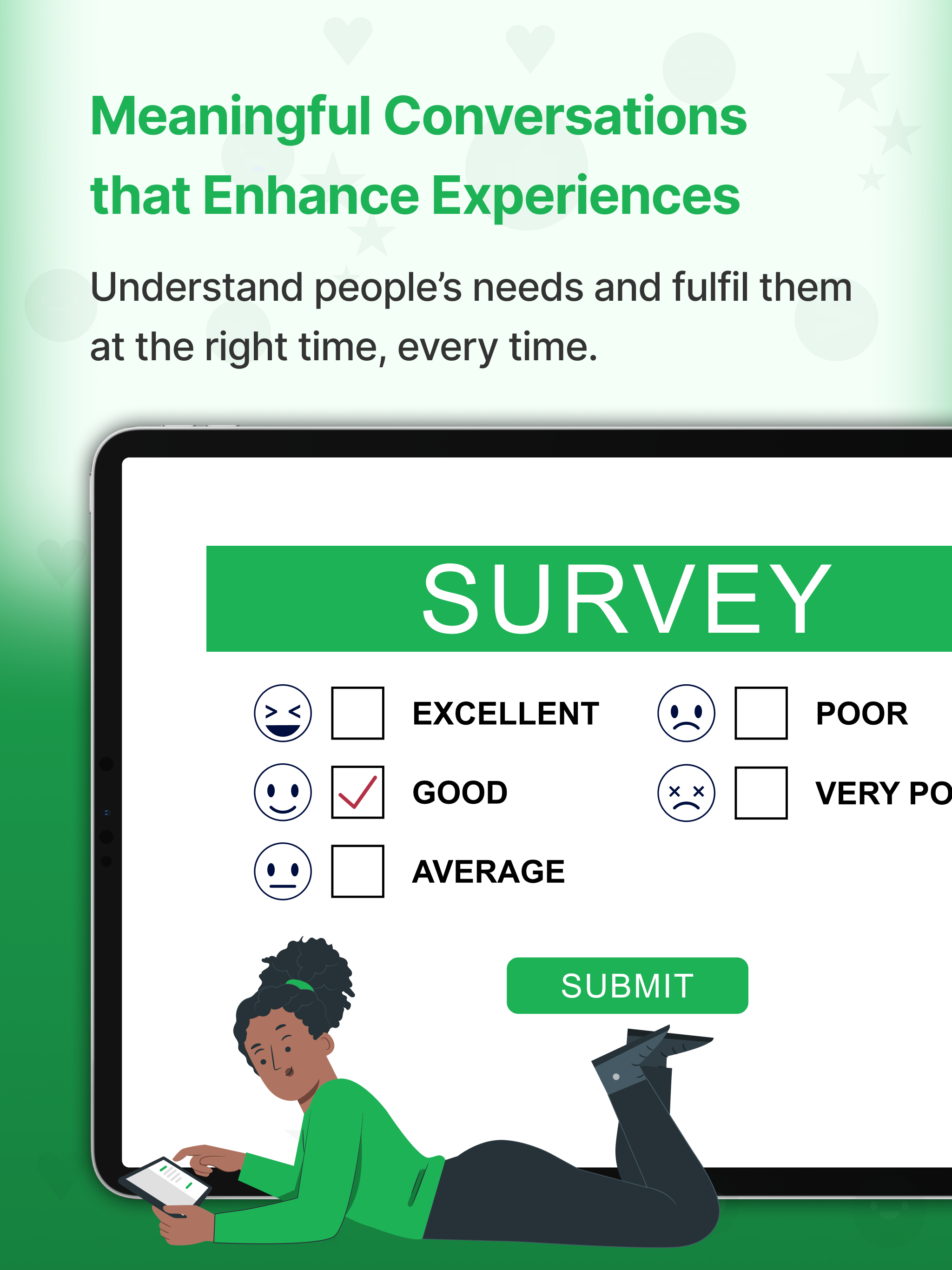 Say goodbye to lengthy, time-consuming forms. piHappiness makes it effortless for customers to share their opinions with a single tap. Faster responses mean higher engagement and more accurate insights.