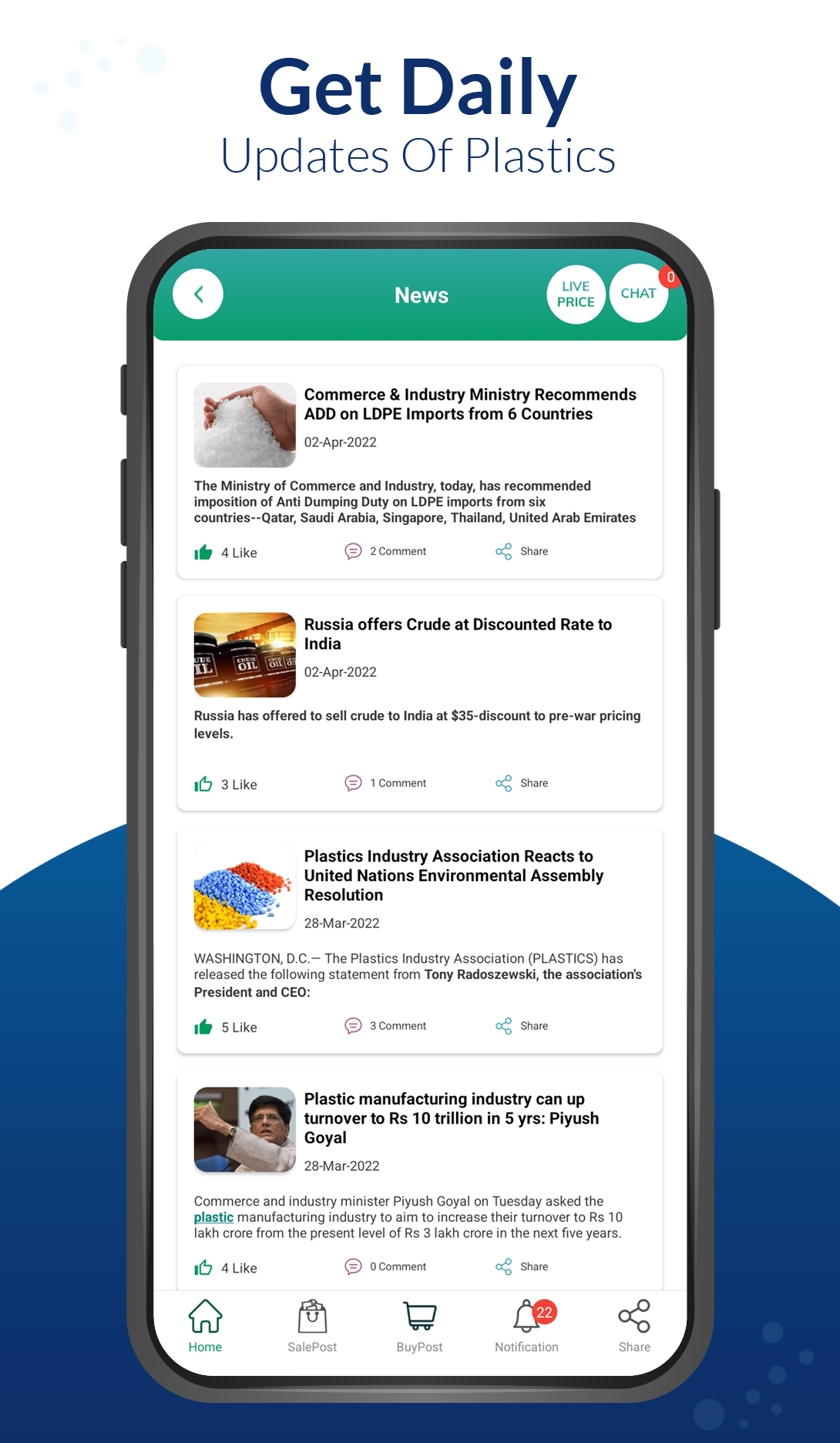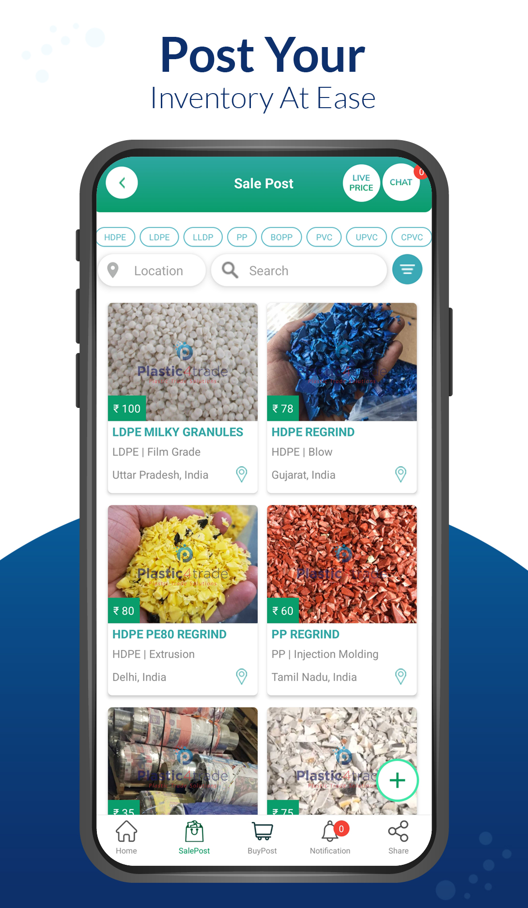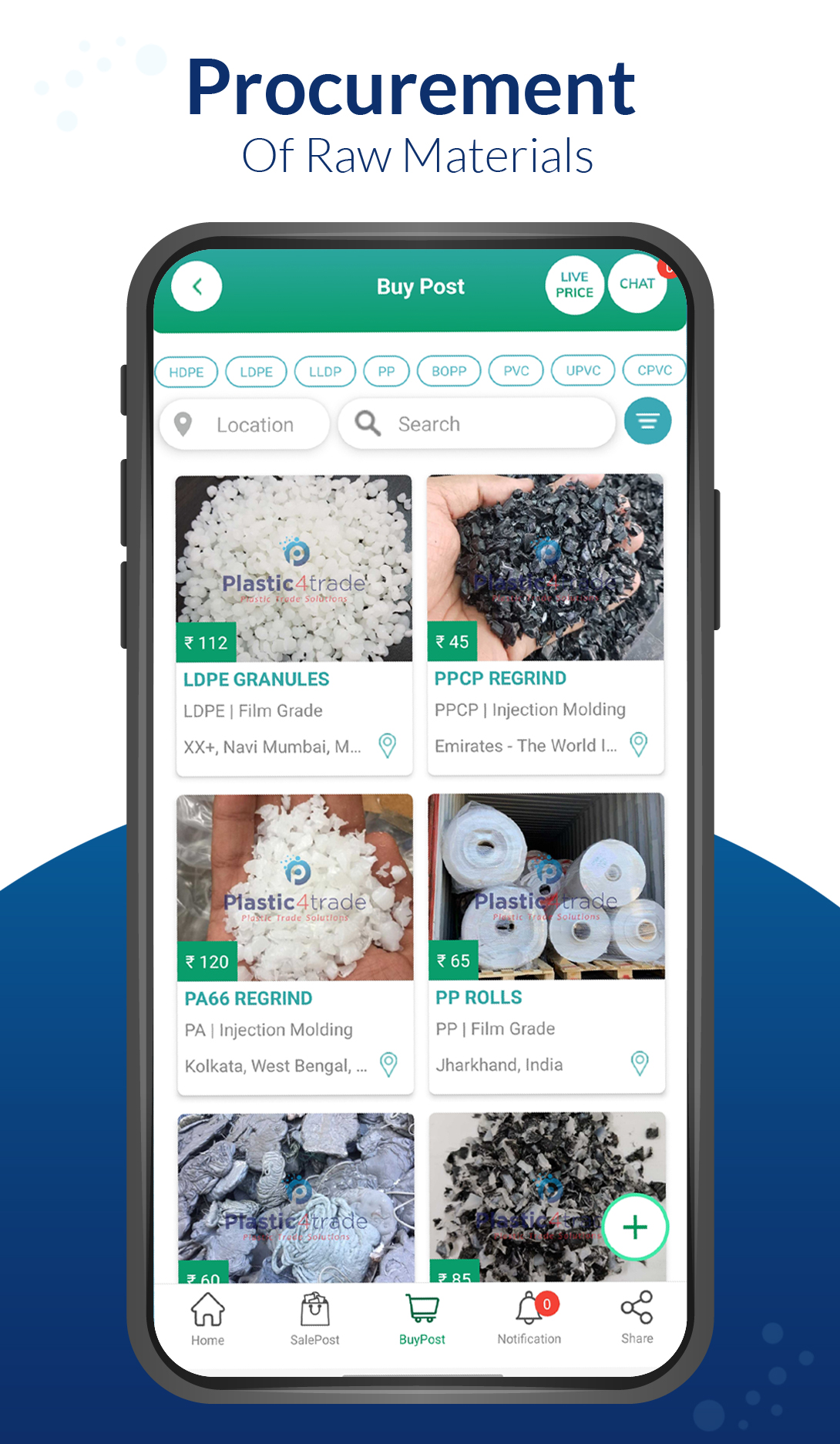 Plastic4trade is a B2B plastic business mobile app solution or a recycle marketplace in India for selling recyclable items like plastic scrap. No need to search from place to place for the best rates for your bulk Buy and Sale material requirement. Get the best trade solution based on your location on a single platform.
