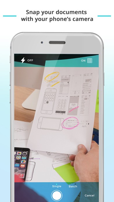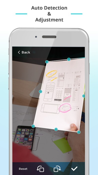 - The smart scanner camera auto-selects and crops the document to scan within the camera view