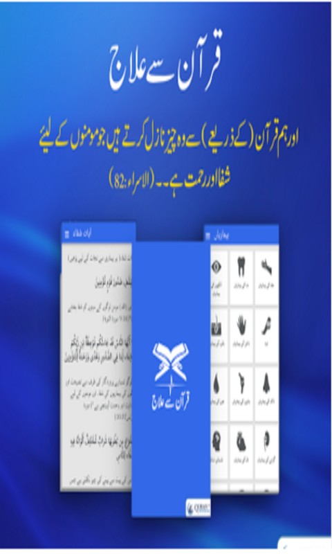 Quran se Ilaj (قرآن سے علاج) is a spiritual aiding Urdu Android App, which is designed to cure the diseases with the help of sacred verses (Ayat e Shifa) of Quran. Quran is a blessing and holds ailment for almost all diseases that is why Allah says in Quran that nothing but in the remembrance of Allah, hearts find solace. [13:28]