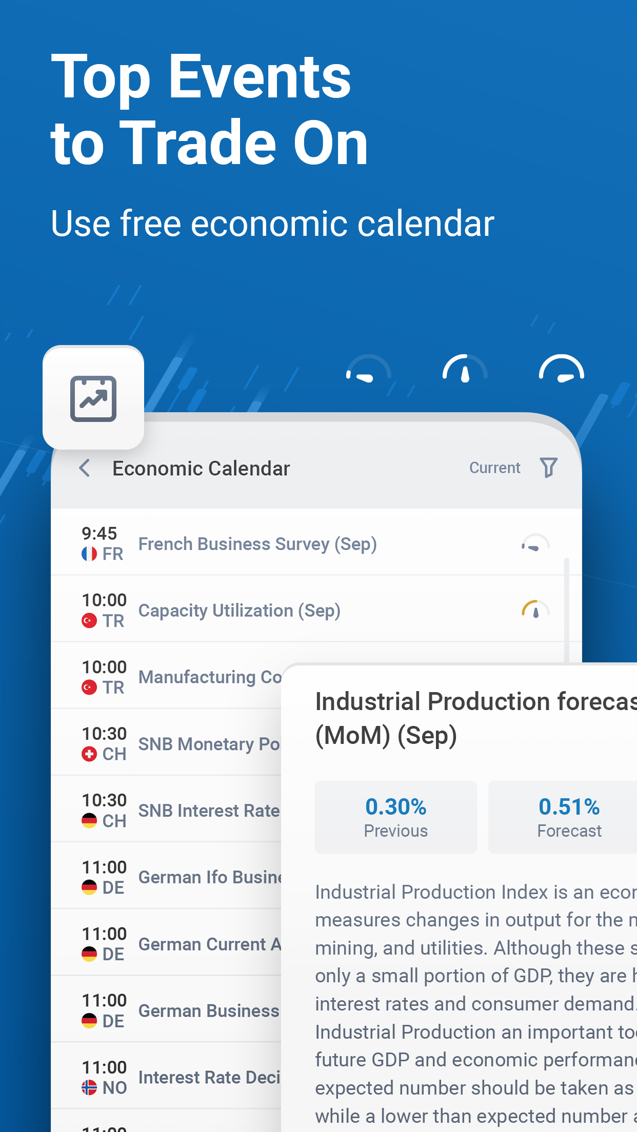 Analytical resources: forecasts, reviews of economic events, online trading signals.