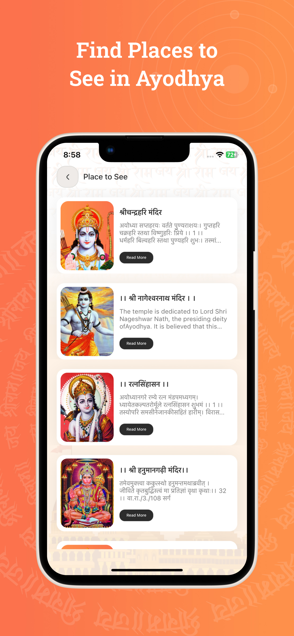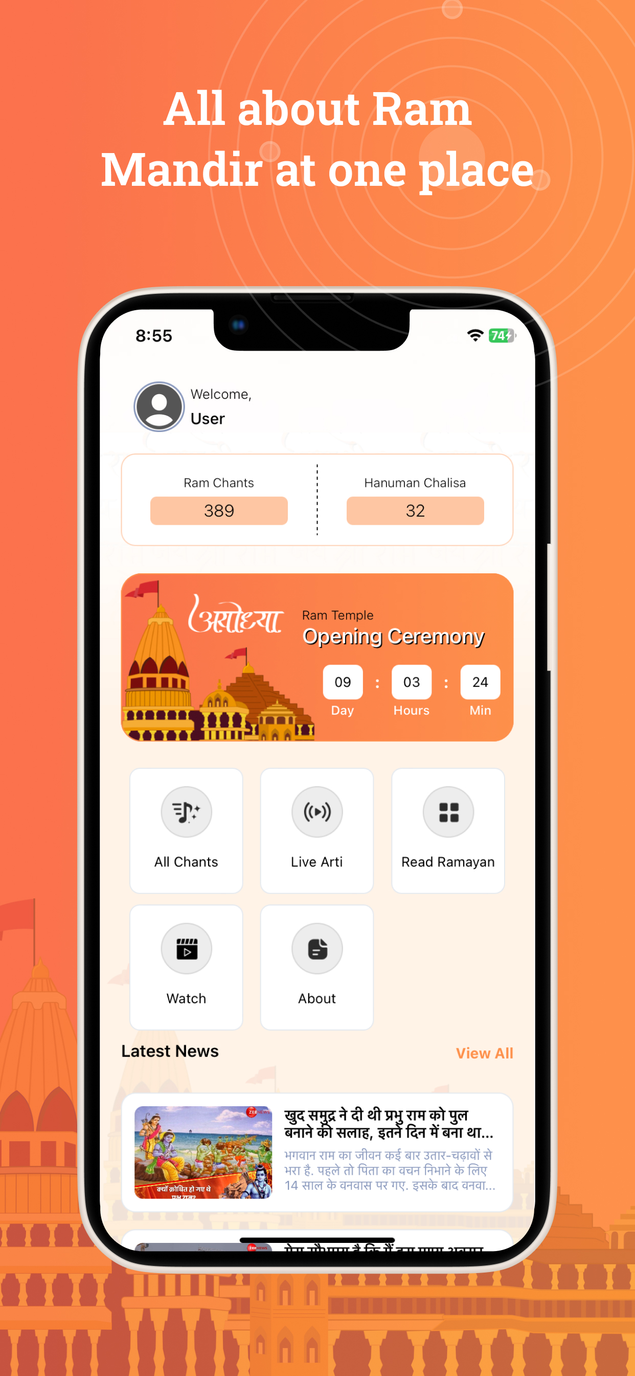 Experience the divine presence of Lord Rama anywhere, anytime with the Ram Mandir - Ayodhya app. This one-of-a-kind app brings the holy city of Ayodhya straight to your phone, offering everything a devotee needs for a deep spiritual connection.