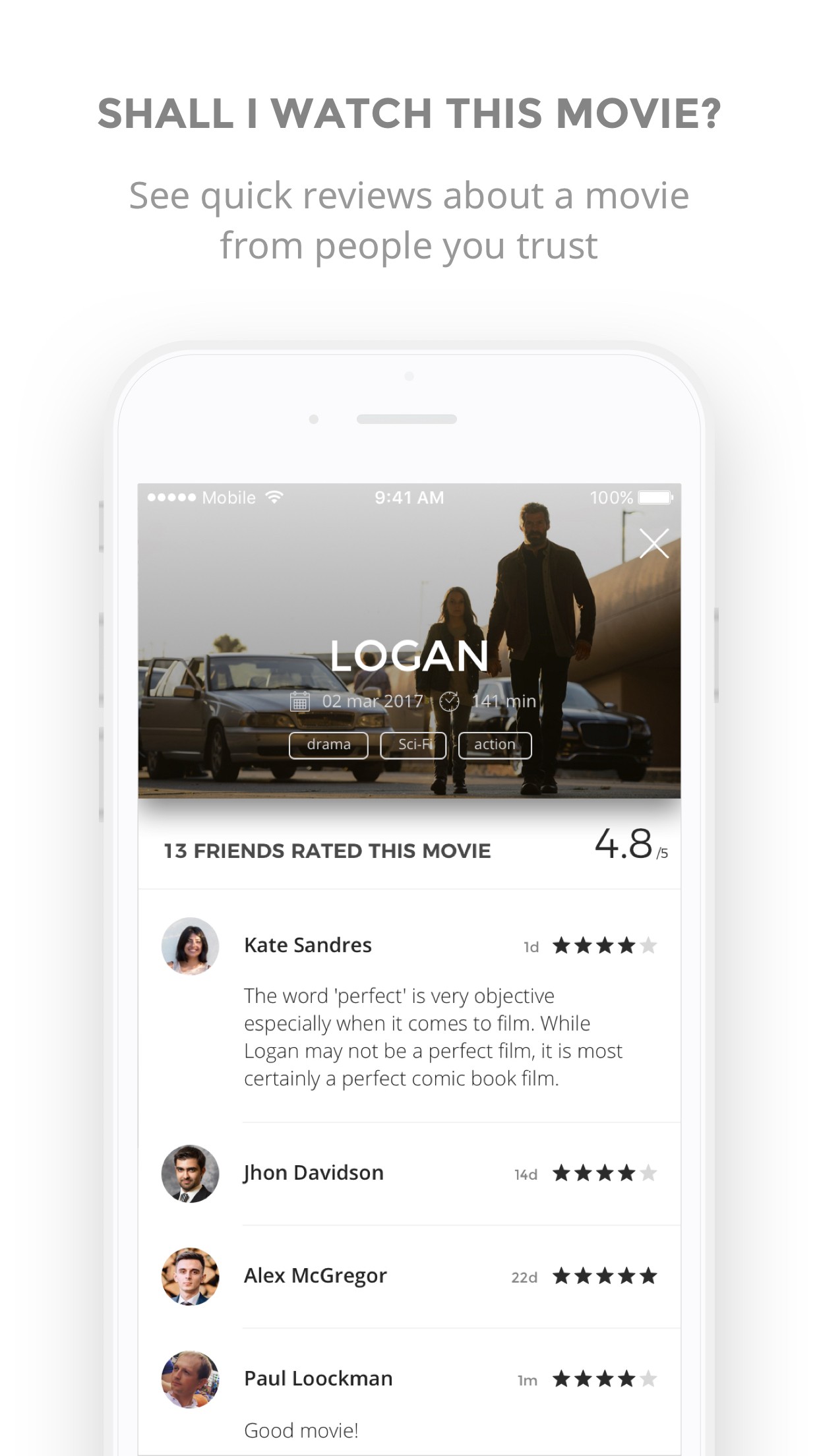 For every movie, you can see reviews from people you trust. You can also compare them to Rotten Tomatoes and IMDB to see what the rest of the world thinks.
